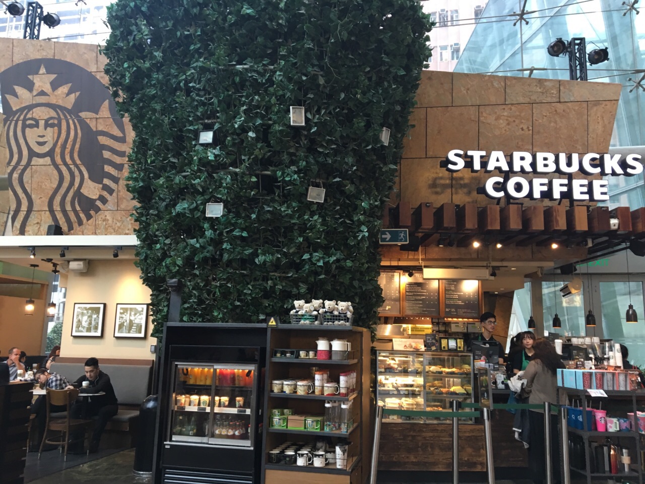 朗豪坊的星巴克就在四楼的中庭位置,可以说位置和视野都是相当开阔的朗豪坊的星巴克就在四楼的中庭位置,可以说位置和视野都是相当开阔的。正好“美女与野兽”在中庭做宣传活动,因为楼上就有个电影院。刚好在星巴克这里座下,喝着咖啡看着活动宣传,时间到了就上去看场电影