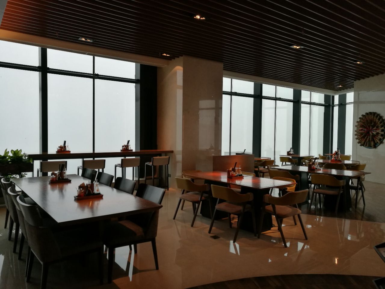 64层,一个吃无锡菜,另一个咖啡厅吃自助。如果只是为了看风景,那完全可以选择这里。