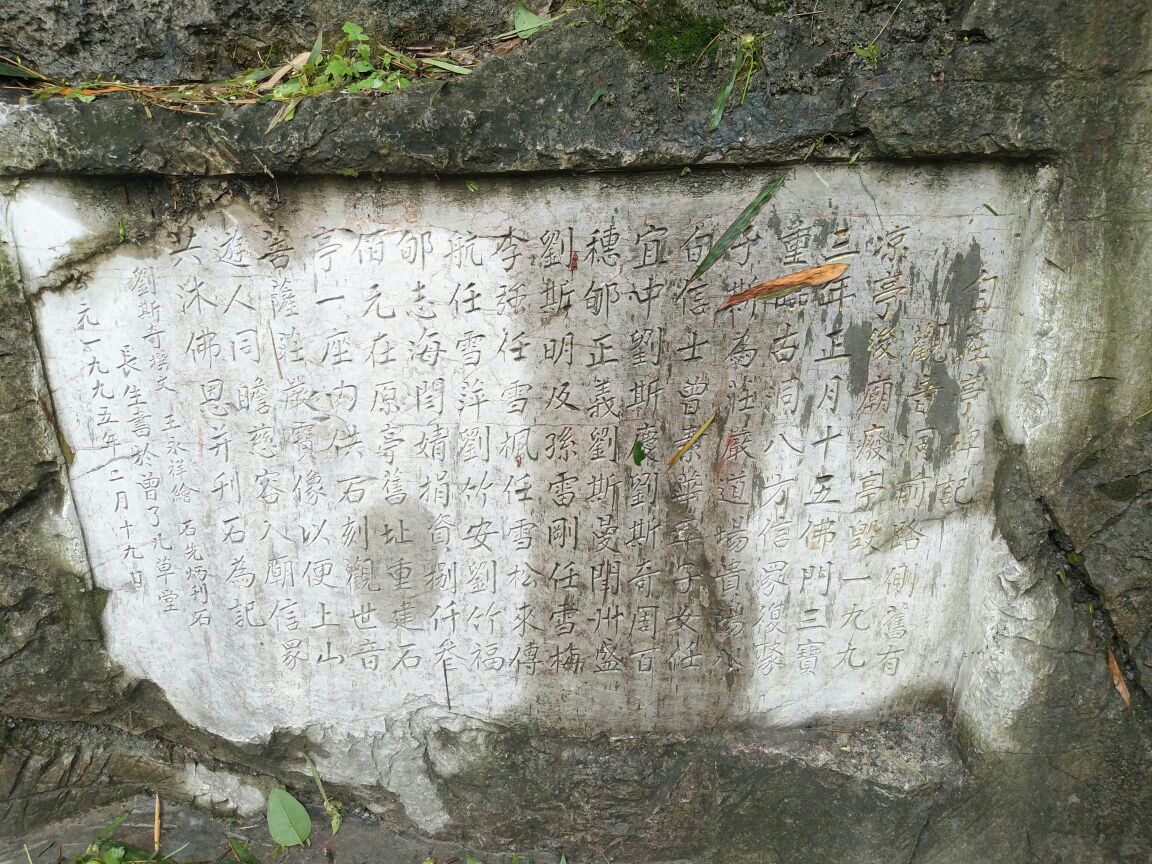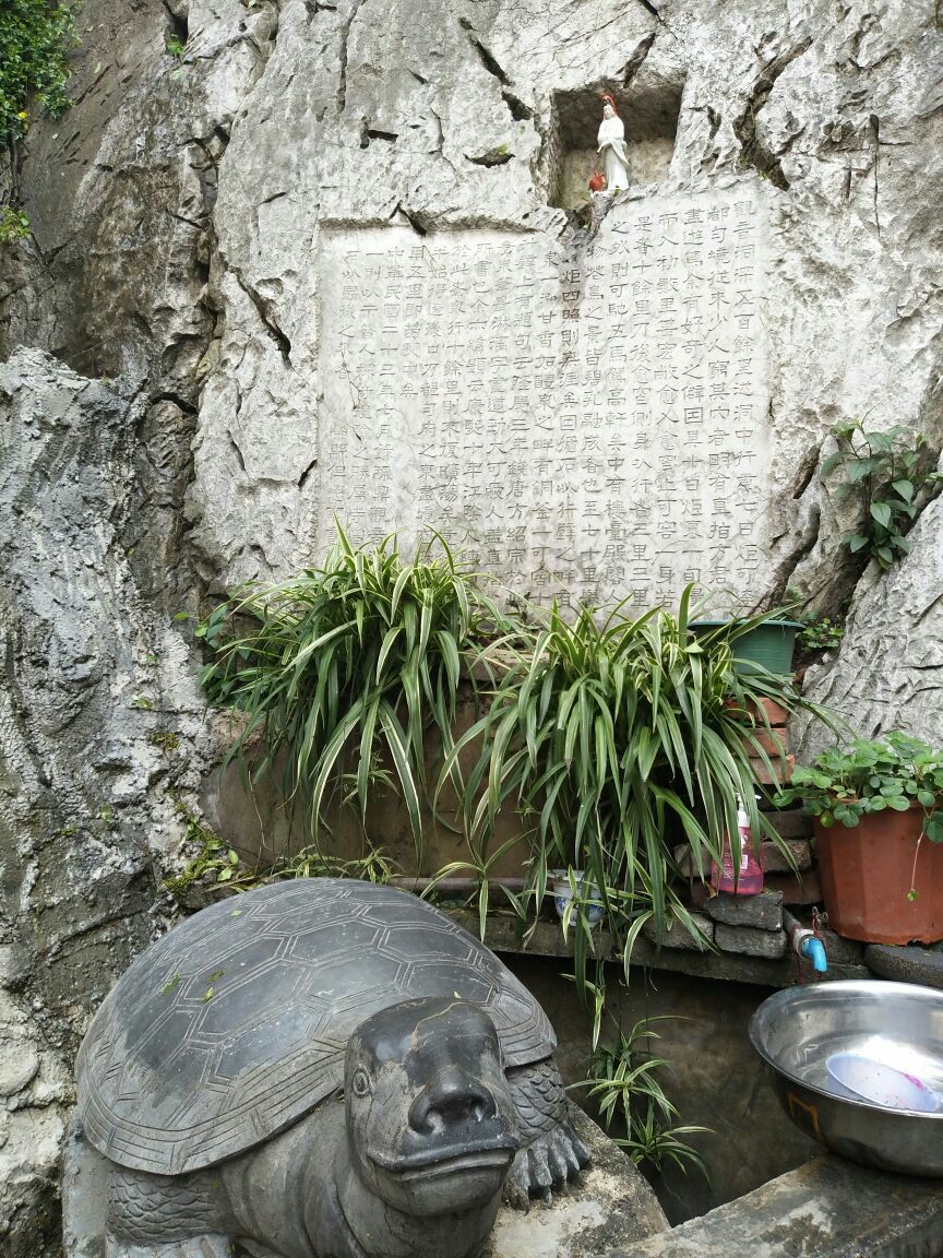 观音洞是个尼姑庵,规模不小,现在正在修复扩建,山顶新修了千手观音殿,观音洞位于半山腰,洞前新立了观音像,洞口边有块民国23年的石碑,记述了有关此洞的传说,据说此洞有百里长,但至今无法探寻,成为一大悬案。