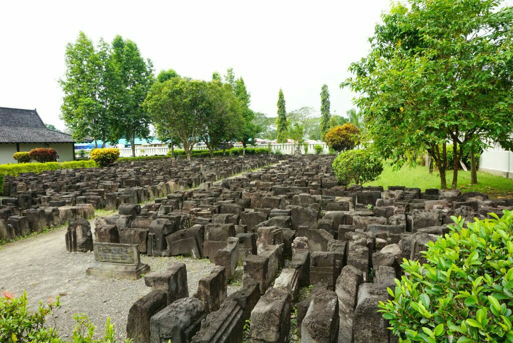门口的石头其实都是火山灰混合物,看起来大大的以为很重,其实真的搬一下非常的轻很神奇这里是波罗浮屠的一所考古博物馆,外面一堆乱石而内室多为印度教的石刻展品,中庭则展出了几套古代的乐器。门口的石头其实都是火山灰混合物,看起来大大的以为很重,其实真的搬一下非常的轻很神奇。
