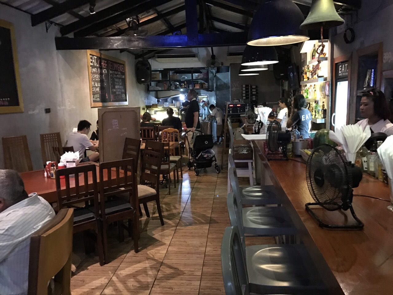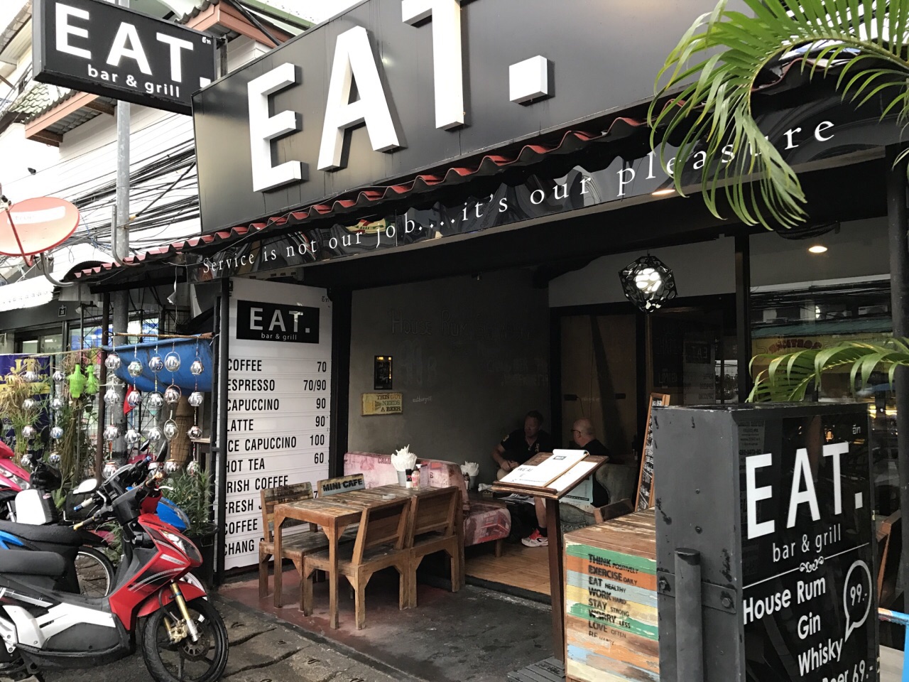 EAT Bar的名字简单又直接,就是叫你来吃东西啦! 这家餐厅非常的好找,就在普吉最热闹的卡塔跟卡伦海滩中间,离普吉希尔顿酒店不远!步行即可。 老板是老外,很明显对于食物下足了功夫!让我一步步详解。。。 让我印象深刻的三道菜:龙虾卡布奇诺、龙虾浓汤、烤鸭胸肉。 老实跟你们说,龙虾卡布奇诺是我点错的,原本还有些后悔,但是喝了以后完全改观!这个龙虾卡布奇诺是将龙虾汤彻底打成汁混上威士忌,最后再打上奶泡,非常特别!推荐一定要尝试。 龙虾浓汤才55人民币,竟然让我吃到了整块、整块、整块的龙虾肉!诚意十足,老板这样怎么赚钱啊。。。 最后就是我的主餐-烤鸭胸肉。先来说被鸭胸肉覆盖的烤土豆,一般来说被盖住的土豆都会闷到太软,但是这里的土豆并没有!主厨的火候很到位,土豆外软内酥。半熟的鸭胸肉淋上店家新鲜特制的澄酱根本绝配!必须提一下这个酱料,吃的出来是特制的,没有超市卖的那种化学味。