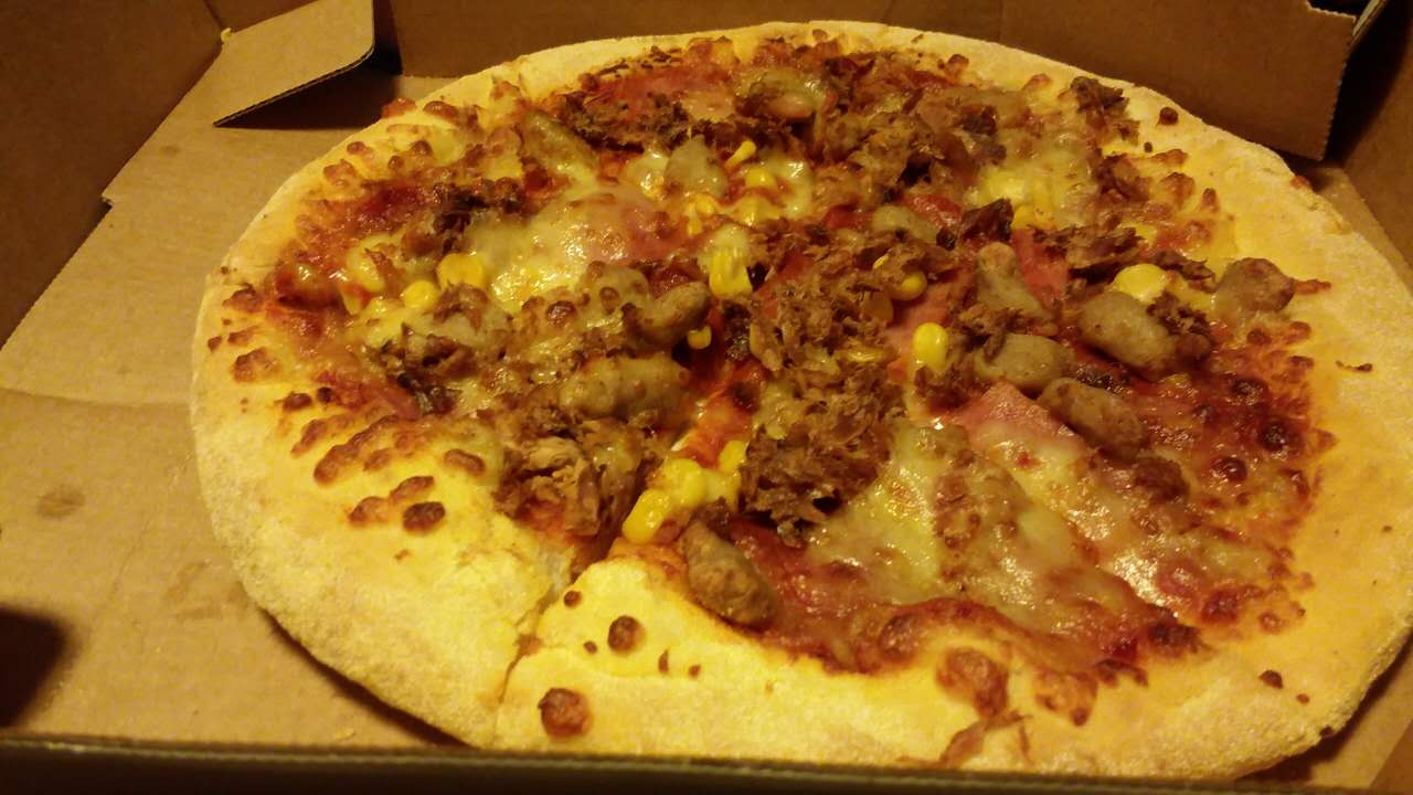 在上海市黄浦区蒙自路上的一家“达美乐比萨”店,生意一直算是比较兴隆的,这家店除了有堂吃以外,还有在网站页面上预订好自取和预订好送货上门两种形式。选择的余地还是蛮多的。现在达美乐还搞了特定的几种披萨饼:“买一送一”的促销优惠活动,很实惠的。买一个披萨再能送一个,就是说原来买一个披萨饼的钱现在可以买两个了,喜欢披萨的顾客们可别错过了这家店哟! 我在这次定了金枪鱼披萨和美式腊肠披萨,前者的海鱼肉比较新鲜,滋味鲜美异常;后者则是在披萨饼子上加了一些番茄酱,配上烤熟的美味美式腊肠,更增添了一份别样美味,令人不禁大快朵颐起来!
