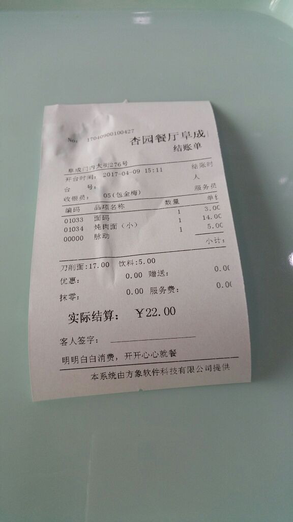 特色是刀削面,点了一份炖肉面和菜码,炖肉面的味道很赞,再加上菜码,绝配这家杏园餐厅位于阜成门内大街276号,马路对面就是白塔寺,是华天旗下的餐厅。特色是刀削面,点了一份炖肉面和菜码,炖肉面的味道很赞,再加上菜码,绝配。