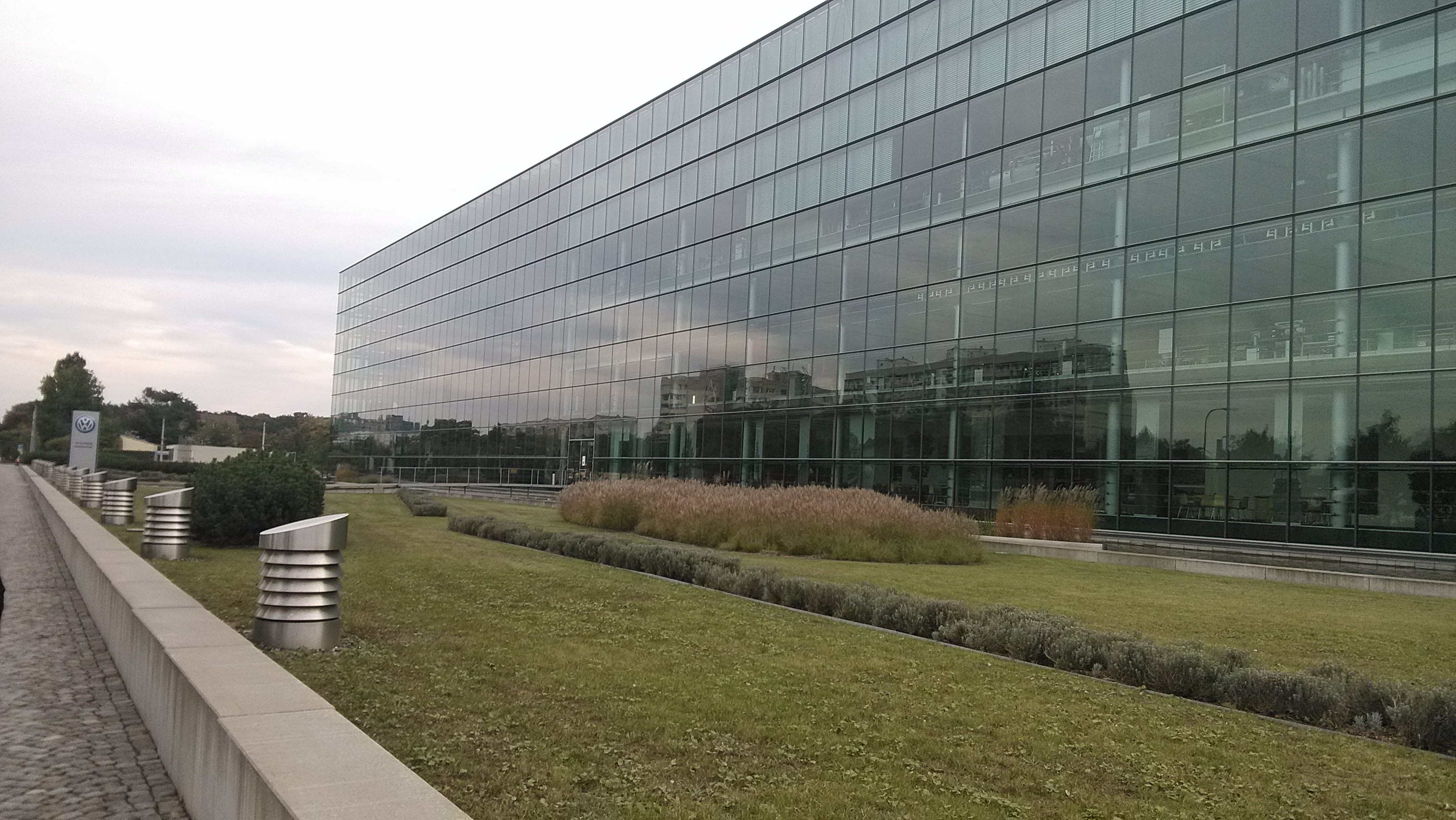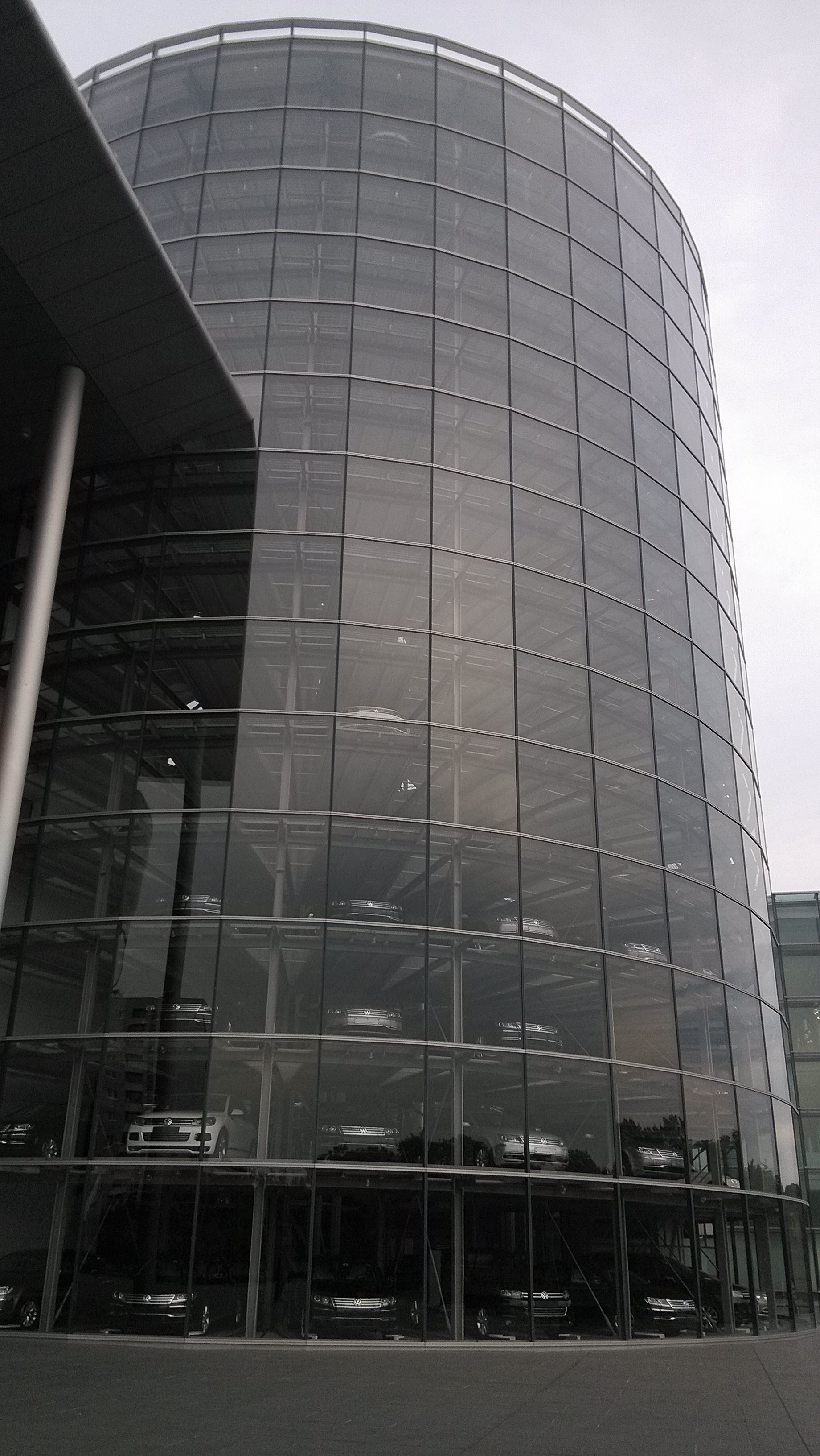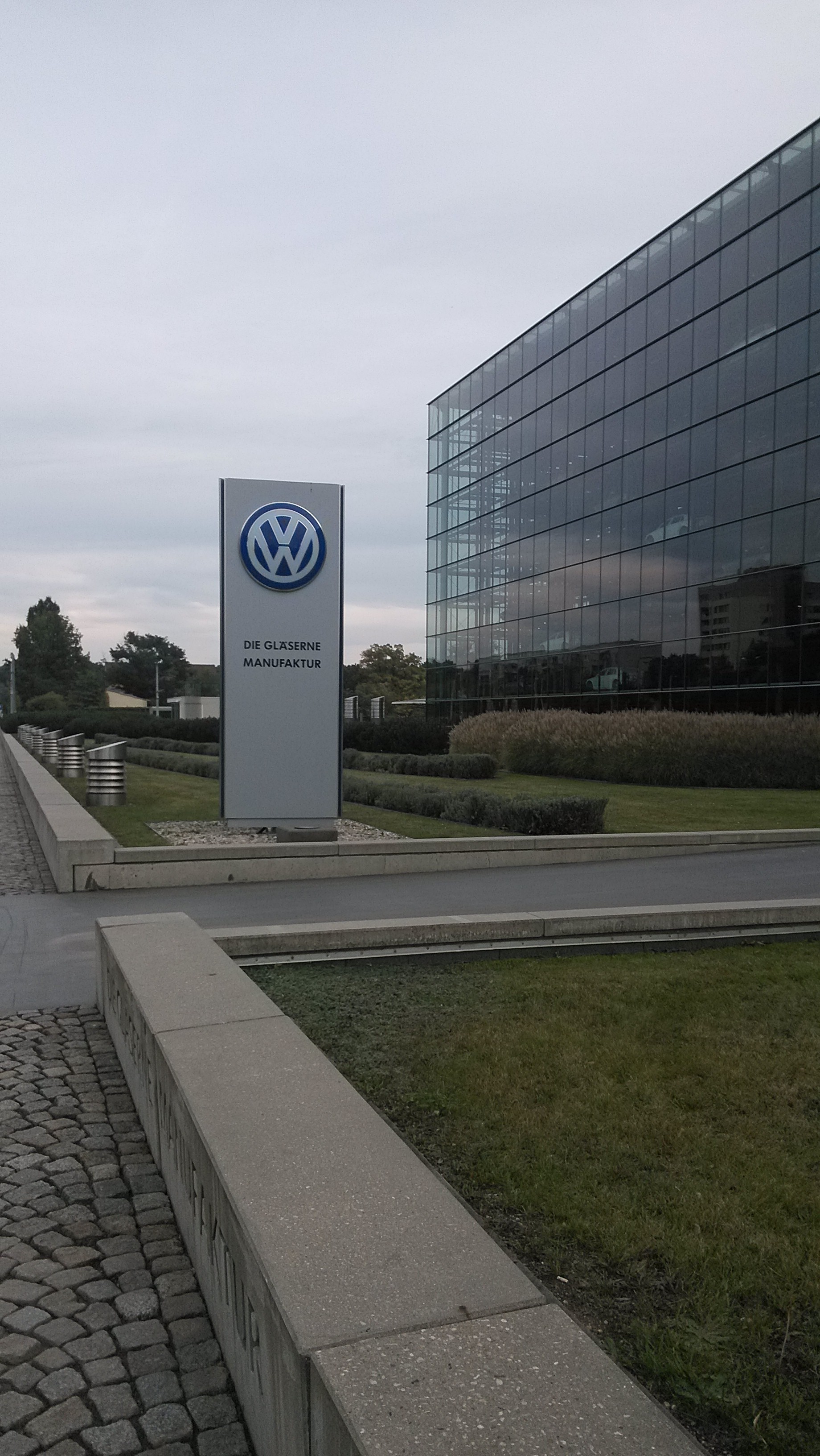 生产著名辉腾汽车的玻璃工厂,就在德国德累斯顿的易北河畔,是这座城市的地标性建筑。玻璃工厂是可以预约进到里面参观的,工厂的建筑外形宏大,周边的环境绿意盎然。在外面清清楚楚看到里面的布局,以及员工井然有序的工作状态,还有车辆按序驶进圆柱形楼体的车位上,透过玻璃看到停放的车辆很是壮观。