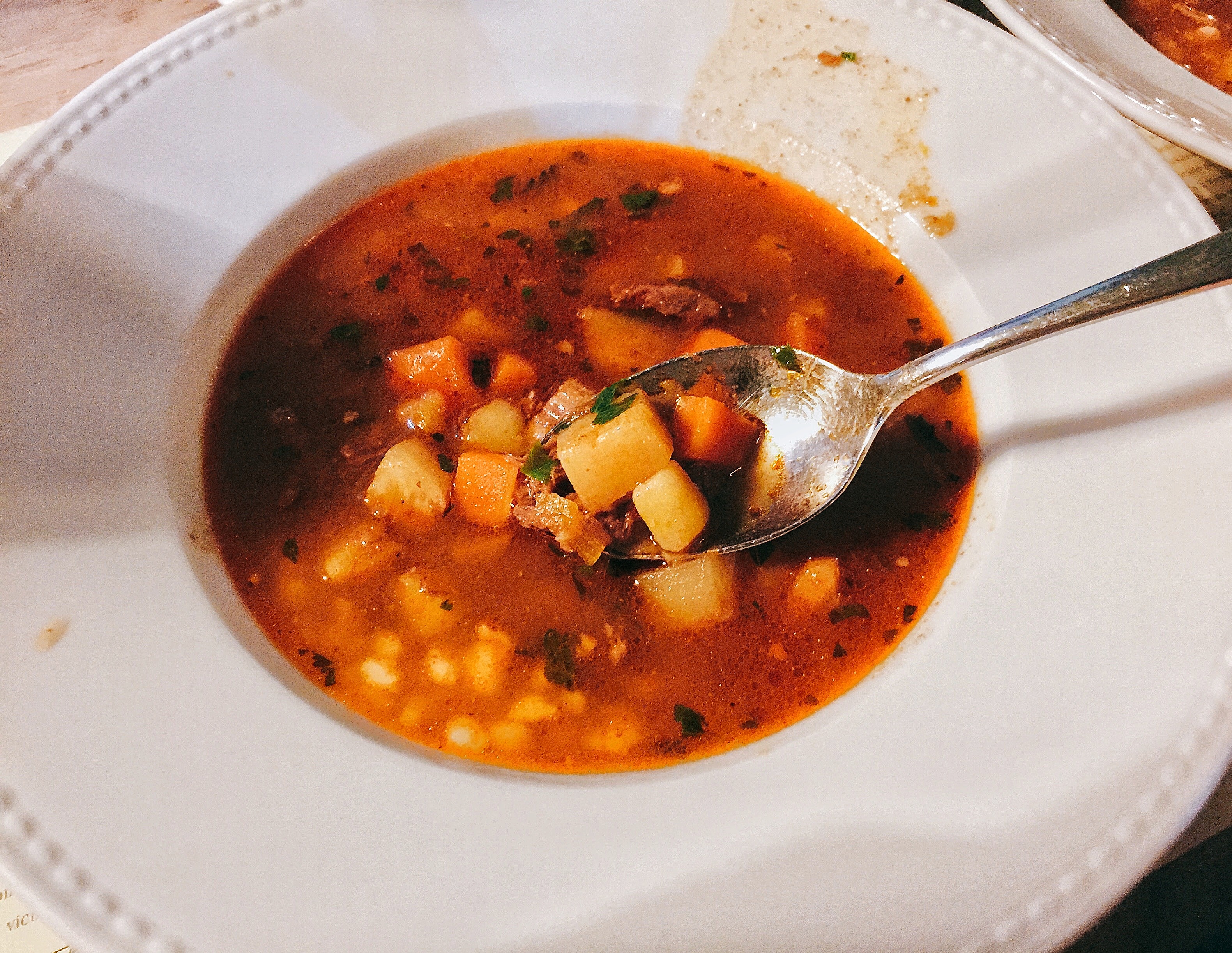 牛肉汤非常好喝,咸度适中,牛肉也多,加上同样量大的主菜,吃得饱饱