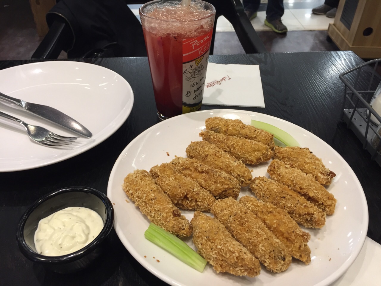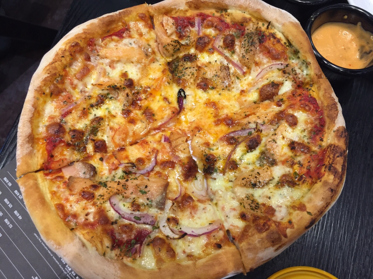 餐厅生意很不错,饭点儿时候很多人等位。看到评价都说他家的披萨比较好,来尝尝看到评价都说他家的披萨比较好,来尝尝。餐厅生意很不错,饭点儿时候很多人等位。最大的特点是披萨的中盘和大盘很大,中盘五六人吃,大盘够七八人吃,极有视觉冲击力。南部手指牛肉味道很不错,推荐。