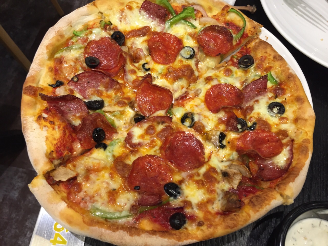 网友2017-04-16餐厅生意很不错,饭点儿时候很多人等位。看到评价都说他家的披萨比较好,来尝尝看到评价都说他家的披萨比较好,来尝尝。餐厅生意很不错,饭点儿时候很多人等位。最大的特点是披萨的中盘和大盘很大,中盘五六人吃,大盘够七八人吃,极有视觉冲击力。南部手指牛肉味道很不错,推荐。