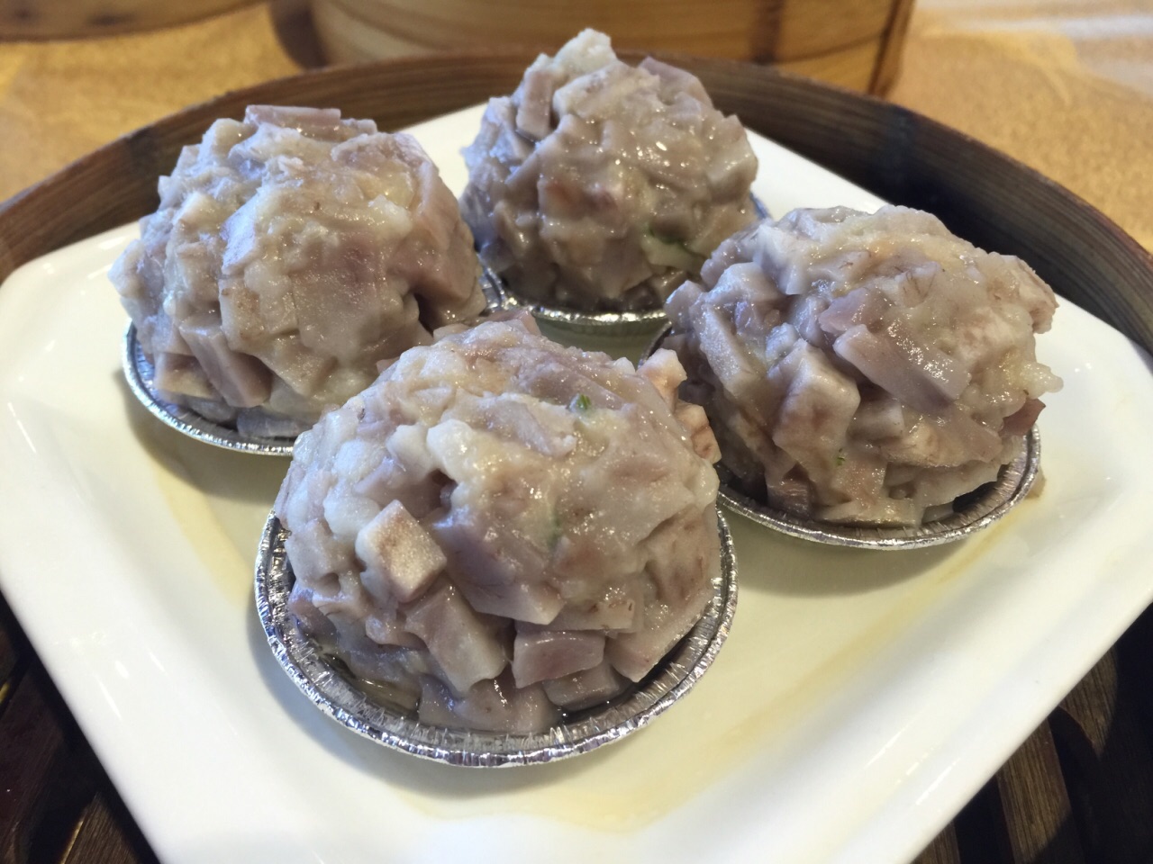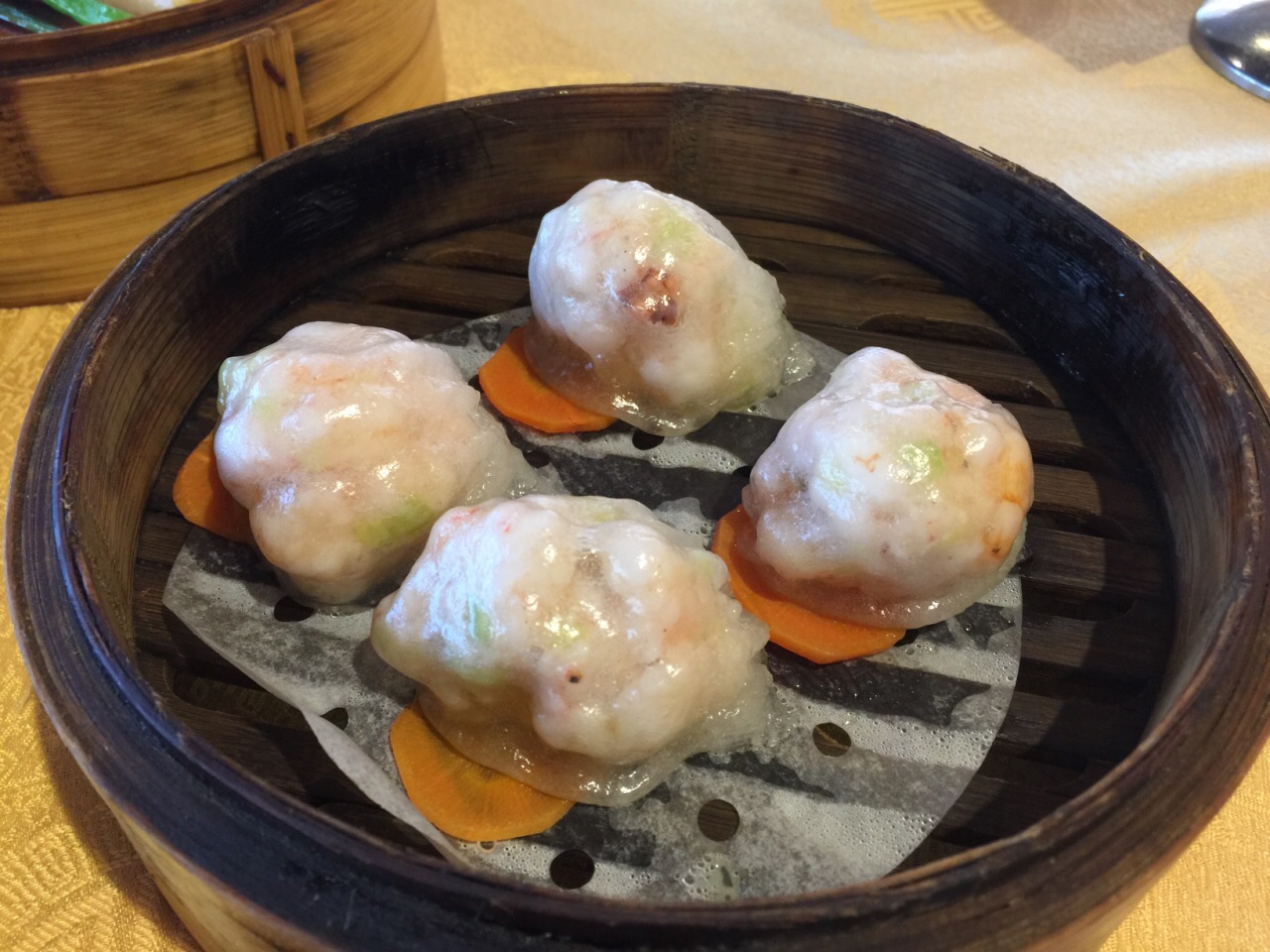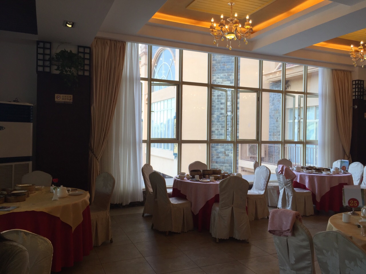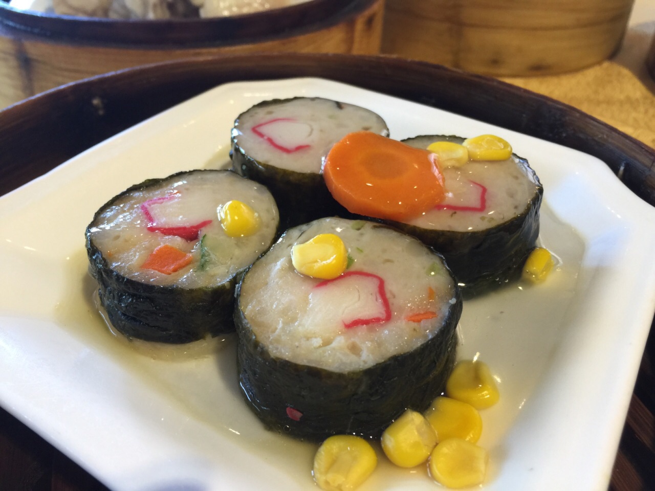 胜意大酒店海南风味中餐厅,坐落在具有“椰梦长廊”美称的三亚湾路最繁荣地段,酒店临海而起,从餐厅阳台便可欣赏到三亚湾那无可比拟的海天一色。二楼早上7点-11点是早茶时间,11点之后便是婚宴时间,说起胜意的早茶,要是来晚了,都没有位置坐,生意非常火爆,服务员忙都忙不过来。 豉汁蒸凤爪,是早茶必点的一道茶,口感偏甜,肉很嫩,骨头都酥了。水晶虾饺,皮白如雪,薄如纸,半透明,内馅隐约可见,吃起来爽滑清鲜,美味诱人。紫菜蟹肉卷,一口一个,满满都是蟹肉。粉蒸排骨,排骨肥瘦相间,口感很滑嫩,有淡淡的芋头味。叉烧包是必点的主食,叉烧的味道很浓。芋头丸子很Q,里面有些小碎肉,吃起来就不会觉得腻。鲜虾肠粉,粉有些厚的,一定要蘸着酱油吃,要不然吃起来会没味道。