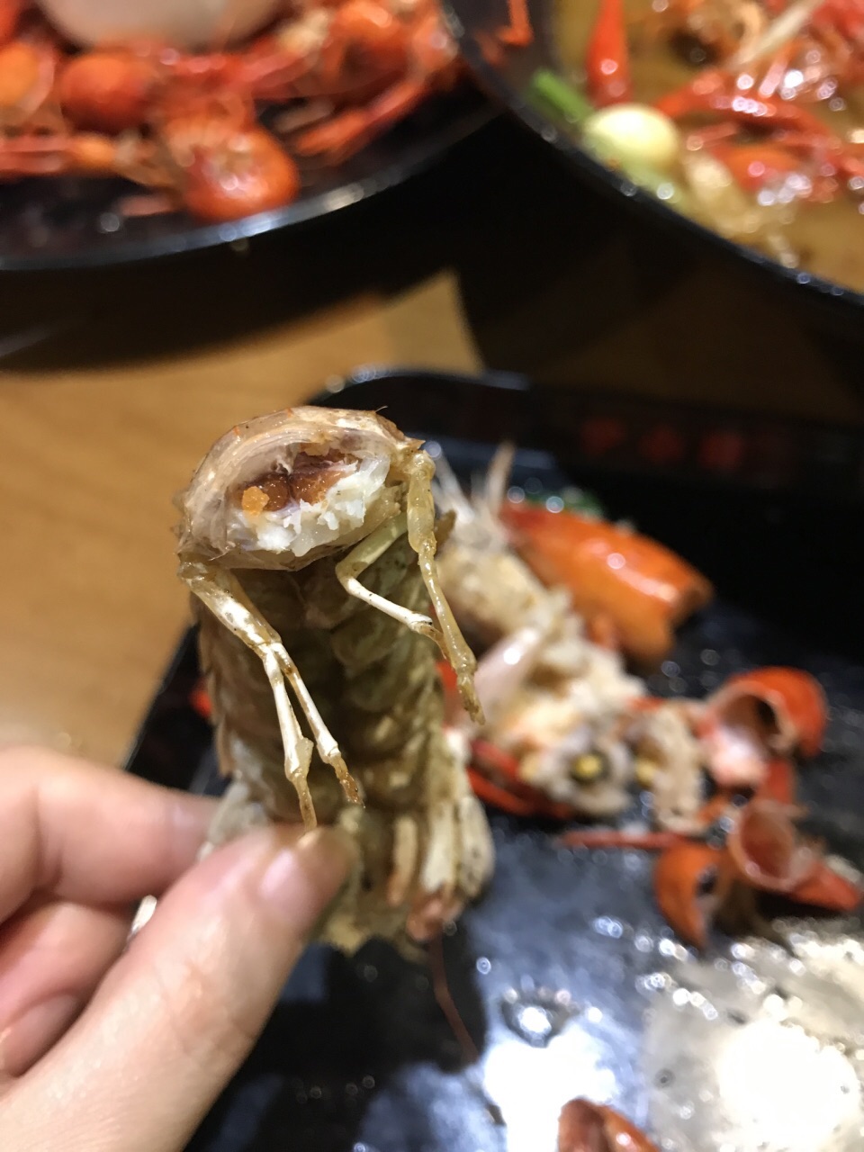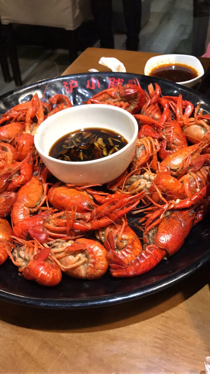 又到了小龙虾季,就到家里附近的小胖来解解馋吧!听说现在皮皮虾也真是肉肥膏满的时候,又看到左右桌子都点了,我也来斤椒盐有膏的吧,98一斤,吃了第一个,没有膏。納尼?老公让我再吃几个再说,只要大部分有膏就算了不用发火。还好后来吃的都算饱满的,就是剝起来太痛苦了。小龙虾黄焖的汤汁太多了,就算带着手套也像大海捞针,味道不错,不过虾线很脏,这玩意儿是要少吃。白灼的酱汁不好吃,但搭配店内送的挺好吃的,但有几个剥开特别脏,吓的宝宝发誓这个月不再吃了(^ ^)