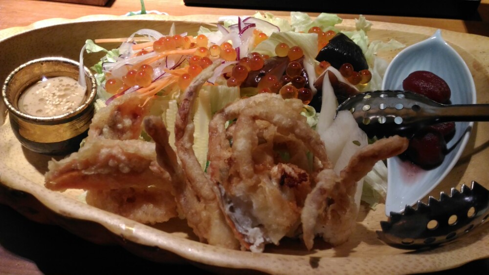 喝點小酒嚐嚐小菜很好。一人不含酒約一千臺幣上下,清酒單杯兩百起,一壺六百。也有套餐可以選擇位於馬路的二樓,環境還不錯。東西品質相當高,清酒的種類繁多。喝點小酒嚐嚐小菜很好。也有套餐可以選擇。一人不含酒約一千臺幣上下,清酒單杯兩百起,一壺六百。品質對的上價錢。