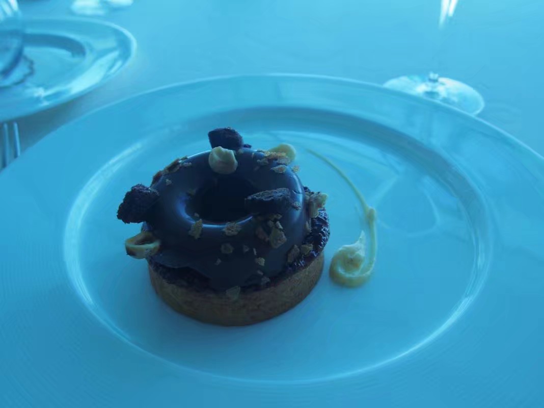 餐厅位于帆船酒店顶层,餐厅没有酒店大堂的奢华但装修雅致安静,可以边吃边欣赏风景,菜单还有中文的,顾客也大多是中国人,购买的是三道式中午餐套餐,菜的味道不错,冰淇淋也很好吃,还点了两杯混合果汁,两人消费合计人民币两仟六佰多元。