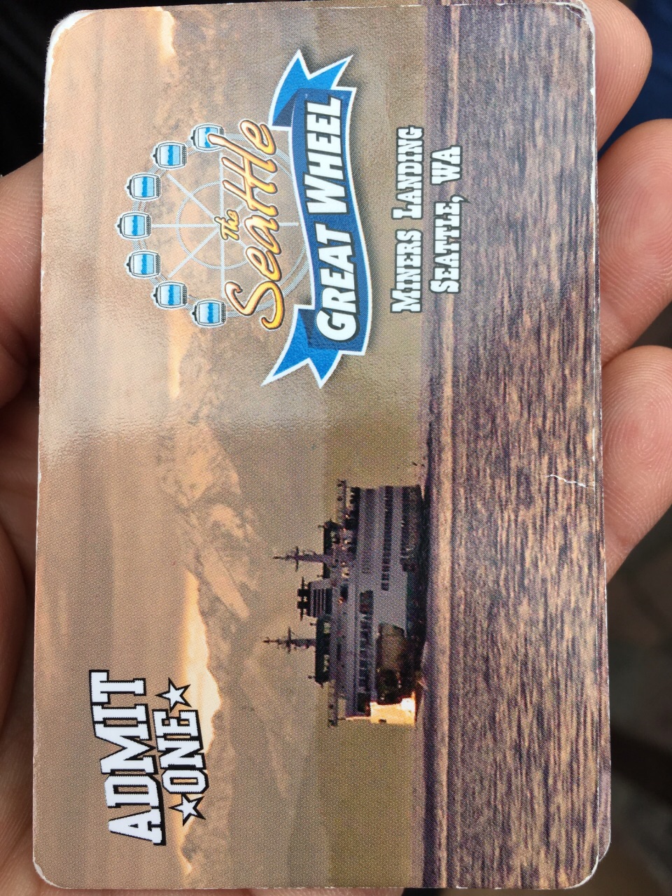 忽晴忽雨的一天,决定去坐摩天轮打发时间。很意外,这个摩天轮与以前坐过的有些不一样,居然要转好些圈。我们一共转了6圈。舱里有紧急按钮,不想继续乘坐的话可以按响按钮,请服务员帮助你离开摩天轮。摩天轮在上下客时是停止转动的。乘坐的人不少,排起了长龙。晴朗的夜晚,港口的景色很美。