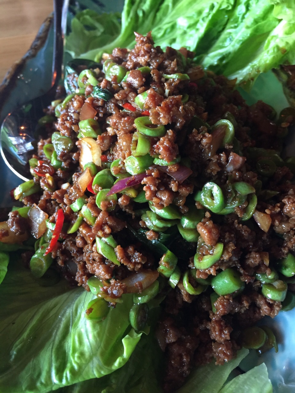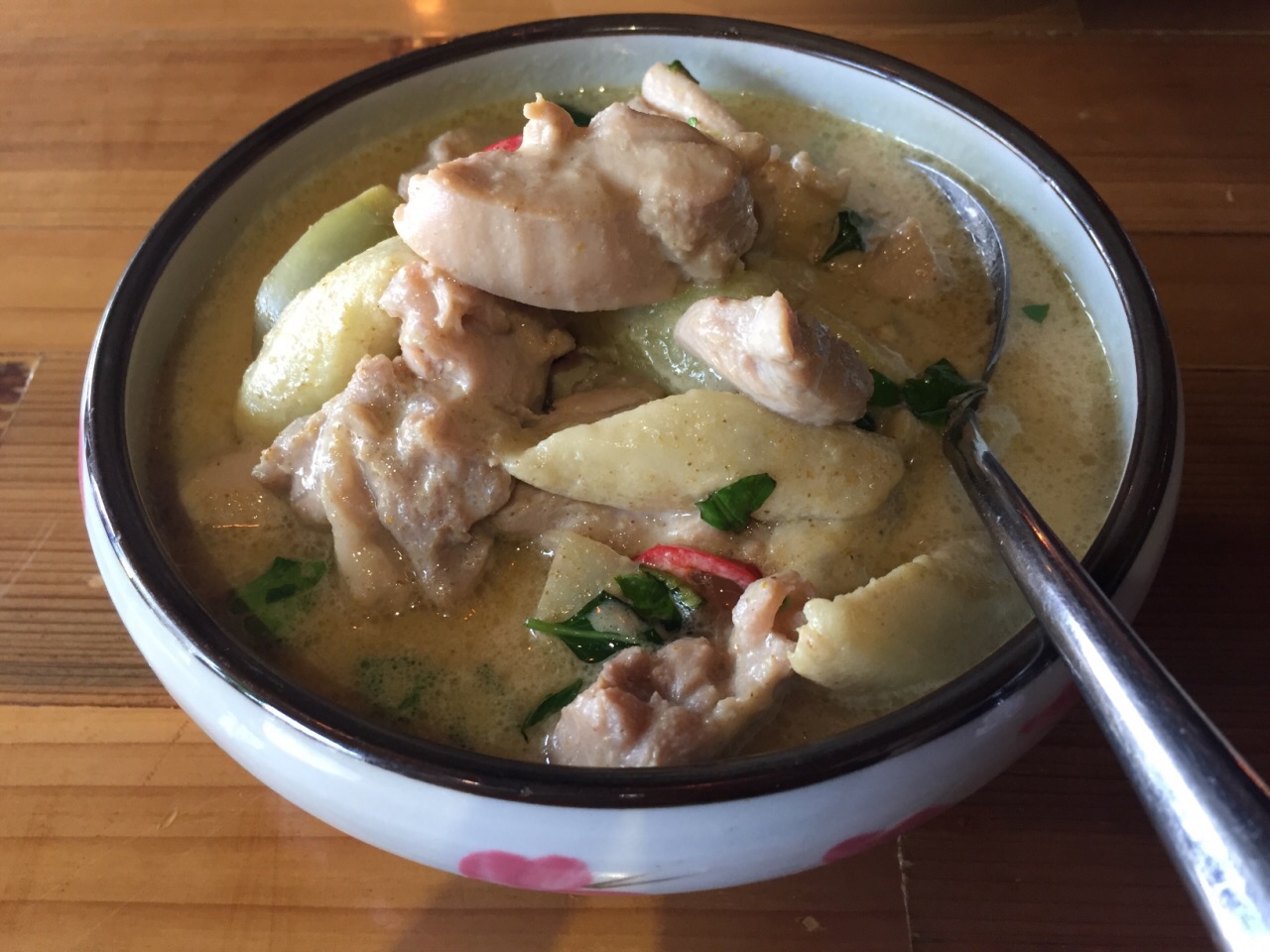 视野很好,能看见金茂和上海中心。这三道菜都特别适合就饭吃,味道很浓,很下饭在复星艺术中心看展览,就说到十六铺吃个中饭,挑了半天,挑了这家。视野很好,能看见金茂和上海中心。点了绿咖喱鸡,炒龙豆,炒肉末,两碗米饭。这三道菜都特别适合就饭吃,味道很浓,很下饭。米饭也很香,是长粒米