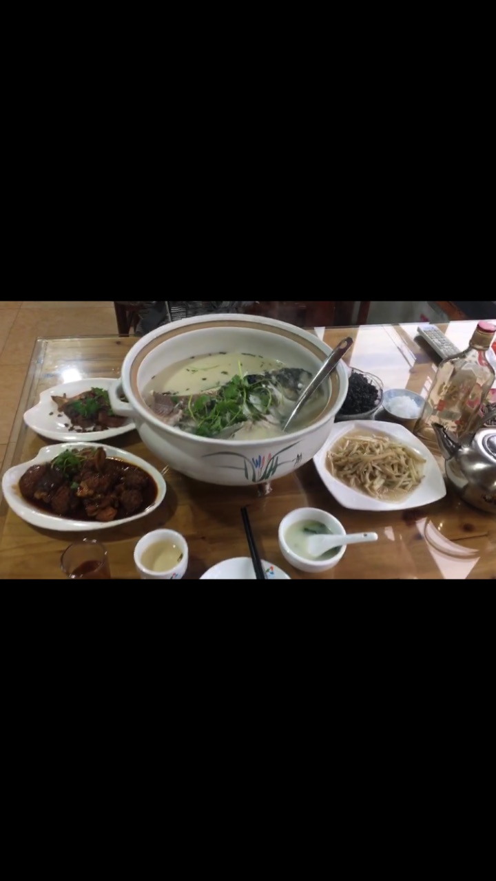 老板一家人超实在!我们在御水温泉酒店入住期间每天都是在他家用餐的!鱼头汤是好大一条胖头鱼的前2/3部分,现捞现杀的、扎肝肥而不腻、白芹爽口好吃、乌米饭不是我们平日想的就是一般的紫米,而是用当地山上的一种植物榨成汁放在糯米里蒸得的,有淡淡的植物清香。在他家吃饭最意外也是最有收获的,就是老板带着我们上山去挖笋。最令我们感动的是,早上下了一场大雨,待雨停后老板开车到酒店接我们,还特地为我们准备了两双鞋,说是怕我们上山路滑,道路泥泞把自己的鞋子弄脏了。真是太好的好心人啦!谢谢老板的一家人!那天我们收获满满,晚饭便让老板把我们亲手挖的笋做了腊肉鲜笋,味道好鲜好嫩,好好吃啊!而且他家真的菜价比别家的实惠!我们就是走了几家店之后选定在他家用餐的!