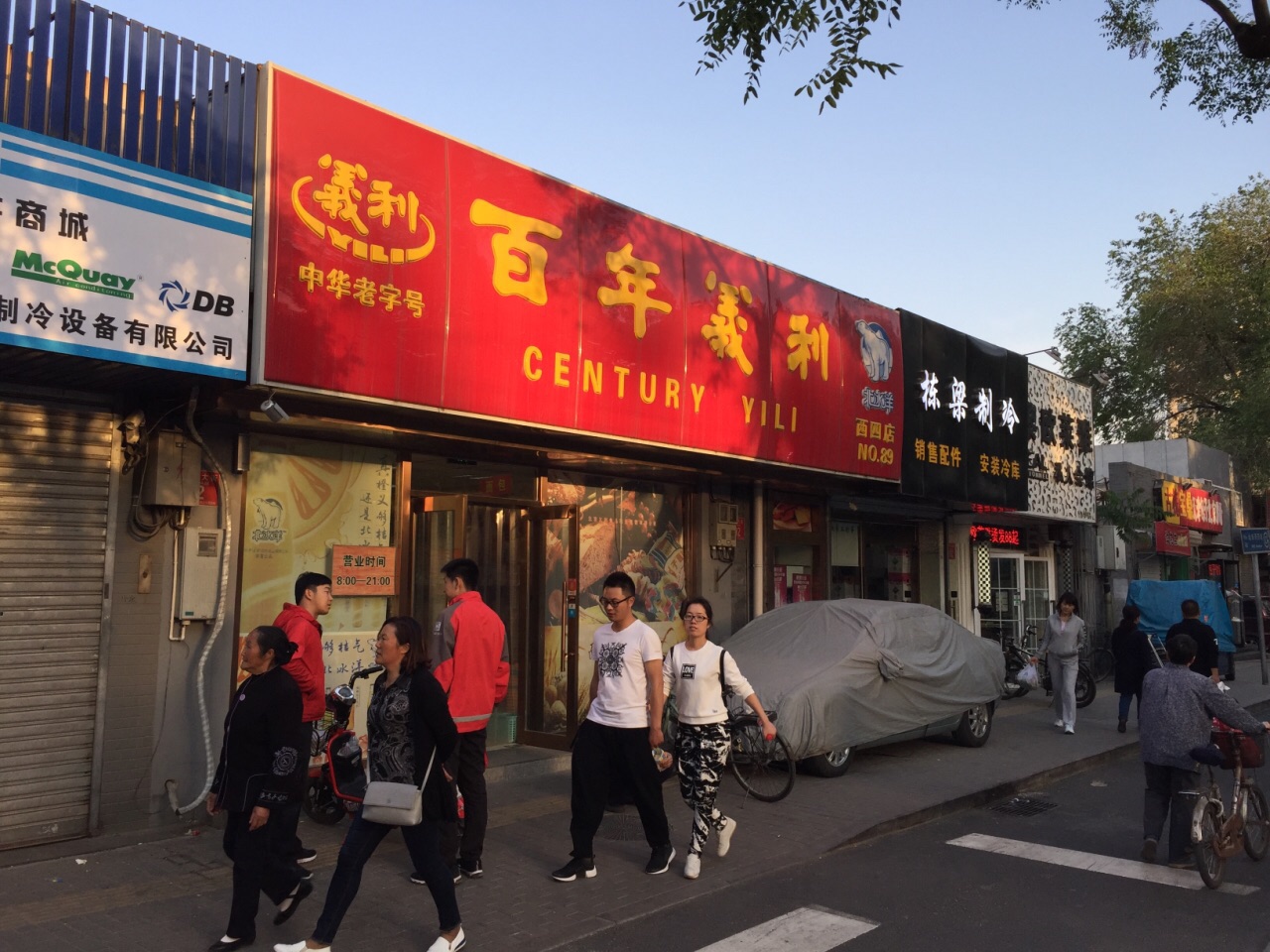 在西四路口北,马路东侧。就像是旧时的副食店一样,各种义利出的食品摆放在那里,有熟悉的维生素面包,果子面包,还用小时候常见的蜡纸包裹,好怀旧啊。也有新产品,比如酸奶面包或者俄罗斯大列巴就很好吃。当然,少不了的就是著名的威化巧克力,记得当年是两毛钱一块。现在包装还是类似过去的闪光纸包装,两块钱一块,赶紧买一些,常常还是过去的味道,真好。