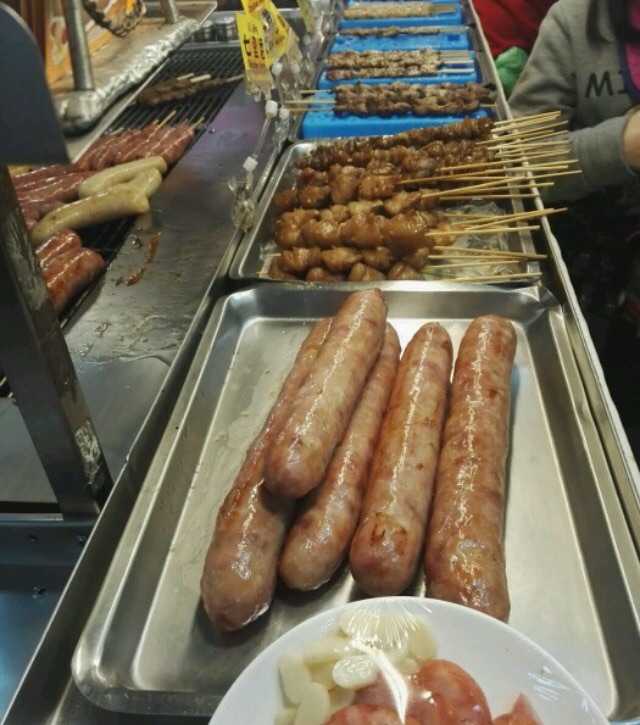 旁边的台湾阿姨一直在跟我们推荐 肯定要包起来吃 不要切碎了吃 他们这里孩子最爱吃了。排队的人好超级多排队的人好超级多。旁边的台湾阿姨一直在跟我们推荐 肯定要包起来吃 不要切碎了吃 他们这里孩子最爱吃了。确实超级美味。香肠很长