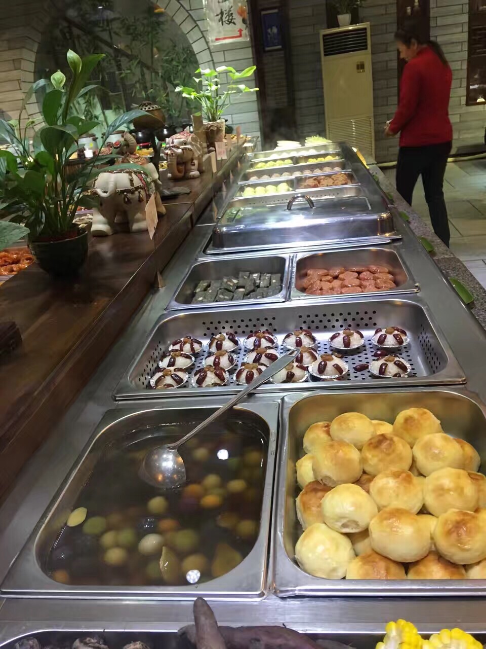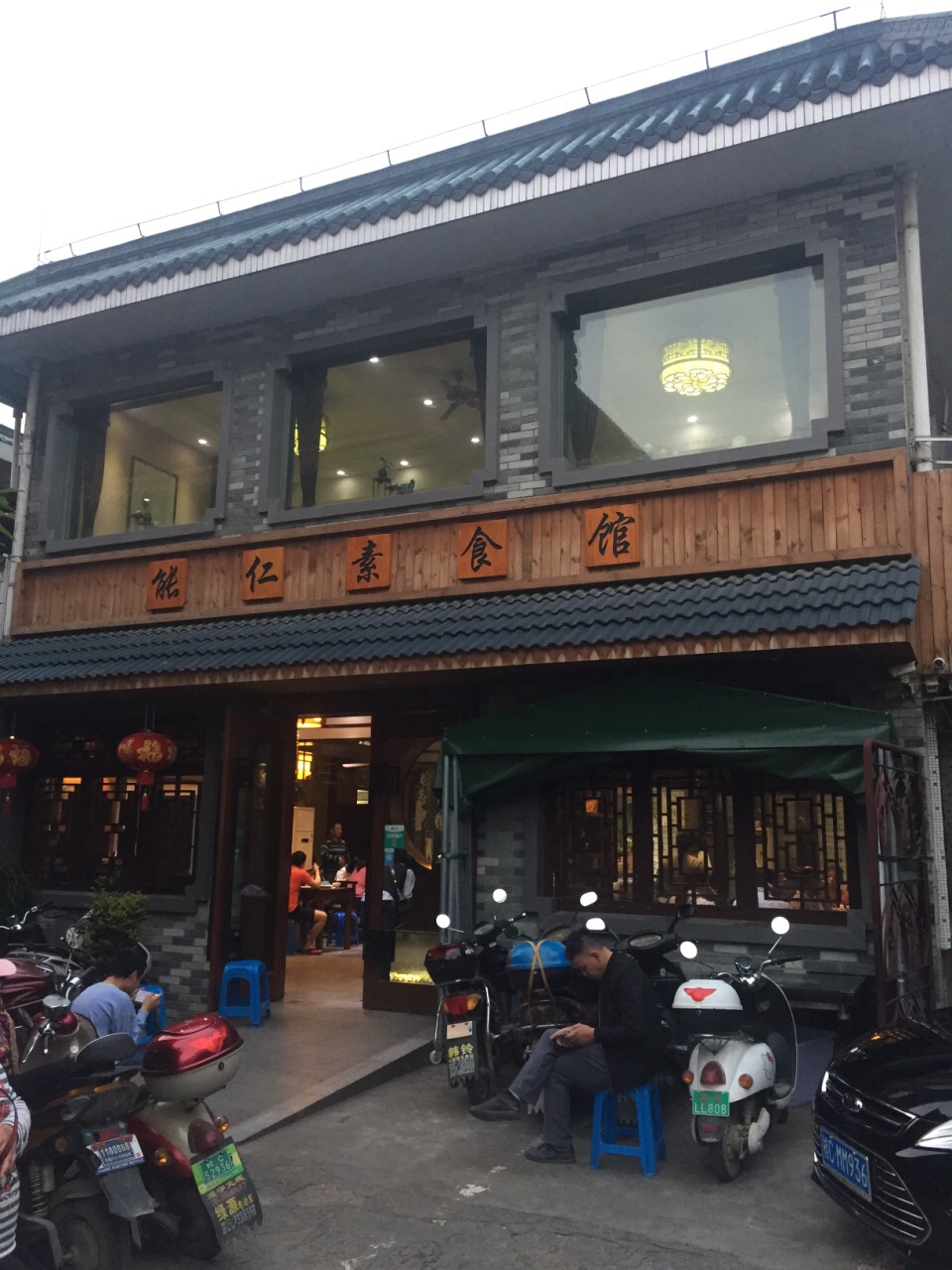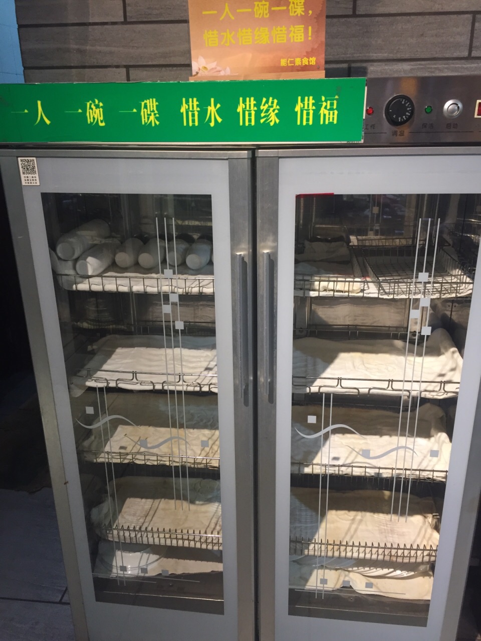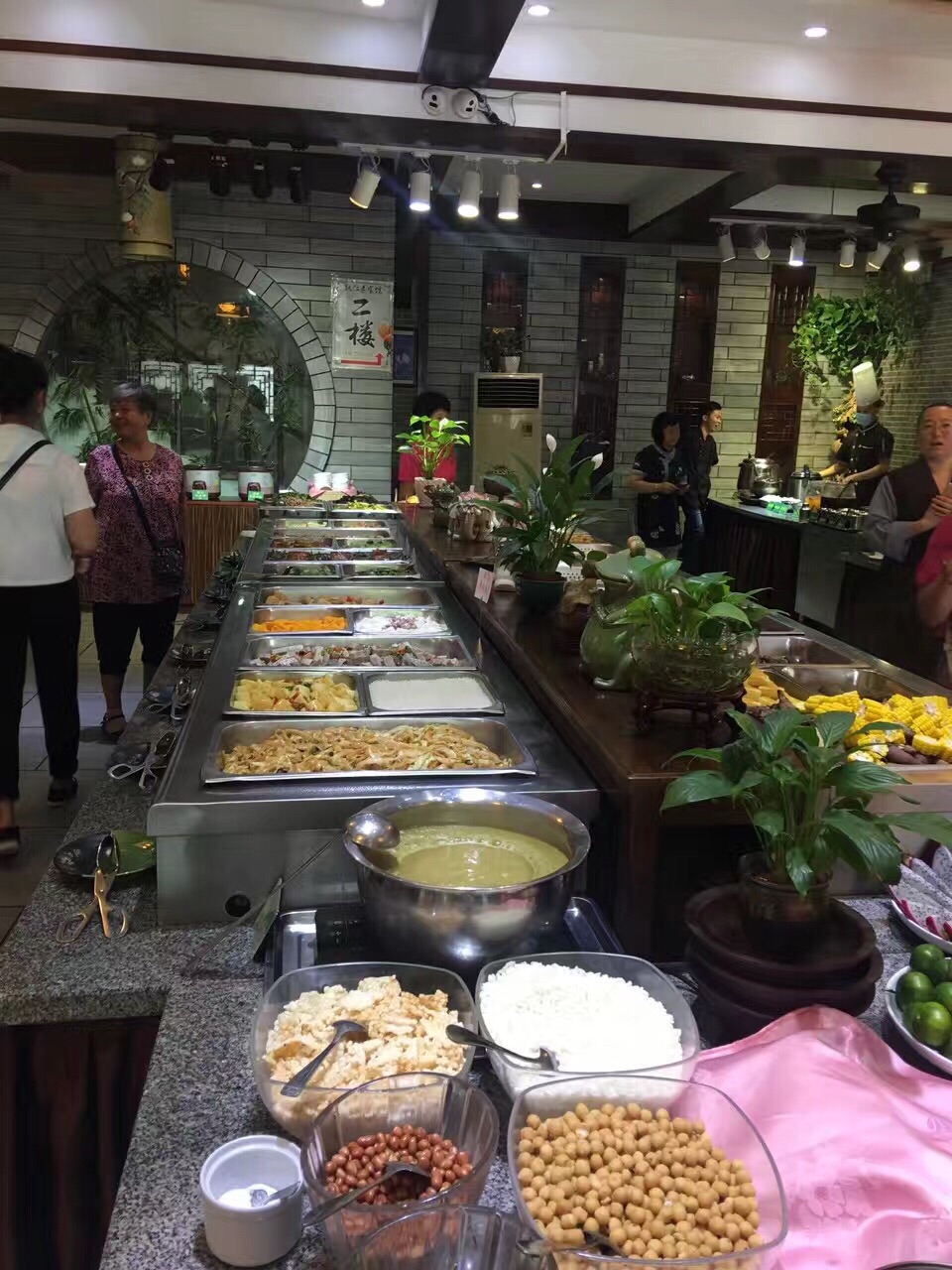能仁素食馆的自助餐,品种挺多的,大概有三、四十个吧,没数过。环境嘛,还可以,自己看照片就知道了。味道也不错,其中“桂林素米粉”和“菌粥”最合口味。卫生条件也好,餐具都放在消毒柜里。每位26块RMB,实在物超所值。晚餐时去到,门口排了几个人,还好。中午人更多。