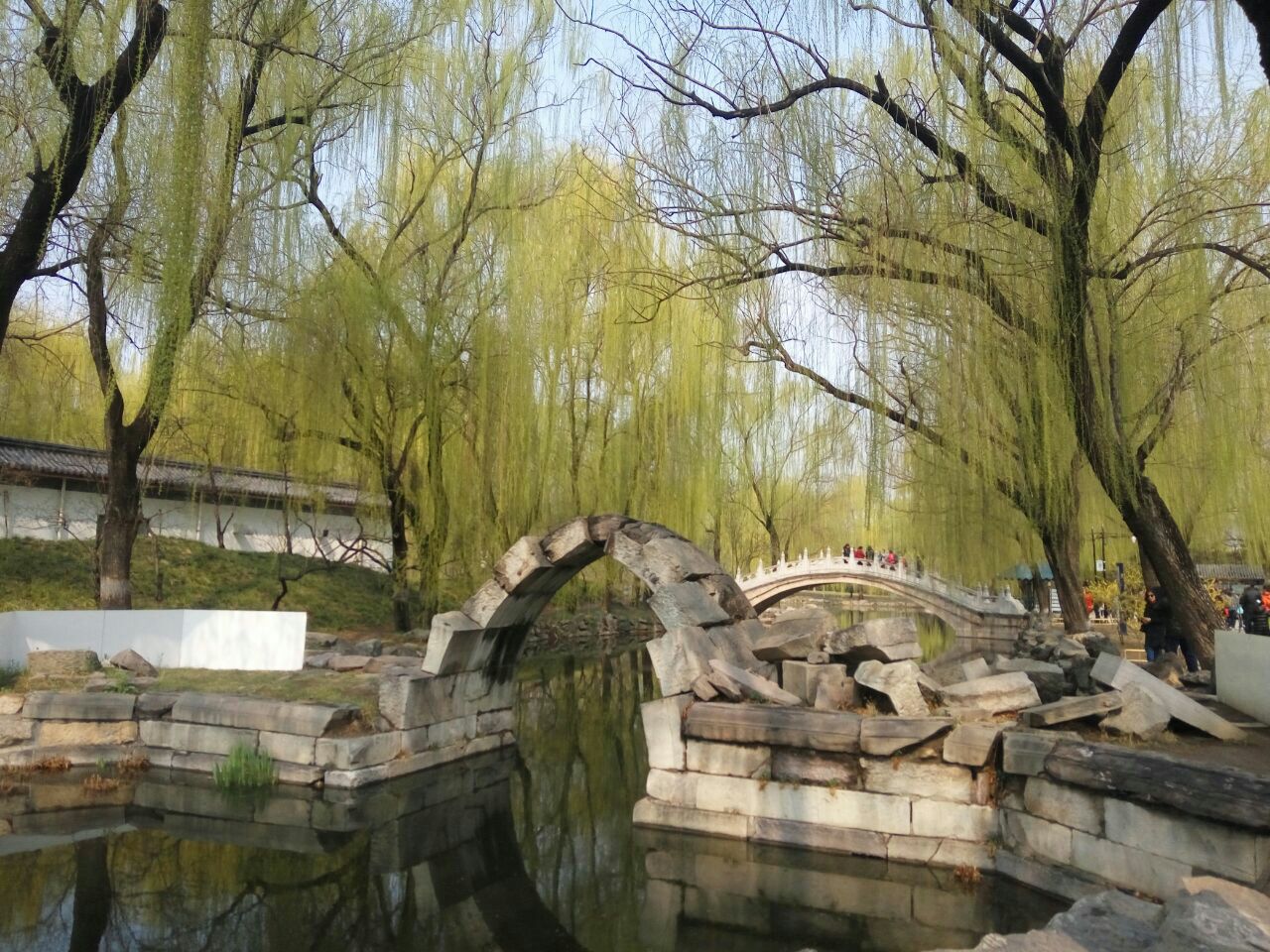 网友2017-04-30...道口,单拱桥的残存,只剩下一个桥拱和一堆碎石了,解说牌上讲这是圆明园几百座桥中唯一留下的残迹了从绮春园宫门进去向左,离鉴碧亭湖面不远的一条一河道口,单拱桥的残存,只剩下一个桥拱和一堆碎石了,解说牌上讲这是圆明园几百座桥中唯一留下的残迹了。