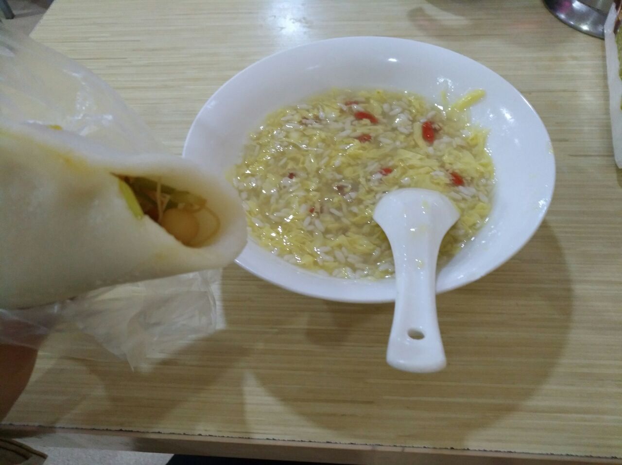 网友2017-05-02嵌糕分量蛮大,女生晚餐一支嵌糕加一份酒酿跑蛋完全可以吃得饱饱得我要得素馅儿嵌糕,当然加肉也可以哟,有猪肉(类似白吉馍里的肉),鸡肉串,里脊等选择。嵌糕的皮儿是年糕,真是鱼米之乡,北方是烧饼加菜或烙饼加菜。嵌糕分量蛮大,女生晚餐一支嵌糕加一份酒酿跑蛋完全可以吃得饱饱得。