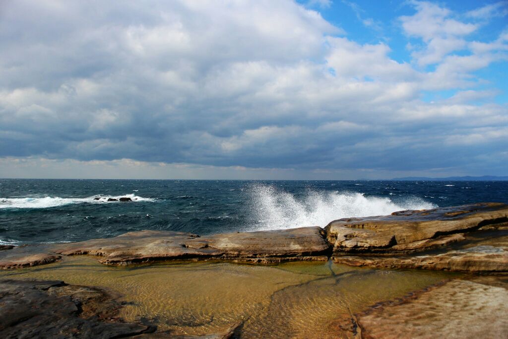 千层敷是白滨町海滩一处奇特的自然景观,这里的岩石像千层饼一样一块一块的叠加起来,当中还有很多洞穴,这里的路面较为平整,海浪拍打的岩石掀起了有层次的浪花,非常的漂亮。这里也是婚纱拍摄的圣地,许多日本新人都会选择在这里拍摄婚纱照,效果相当的好。