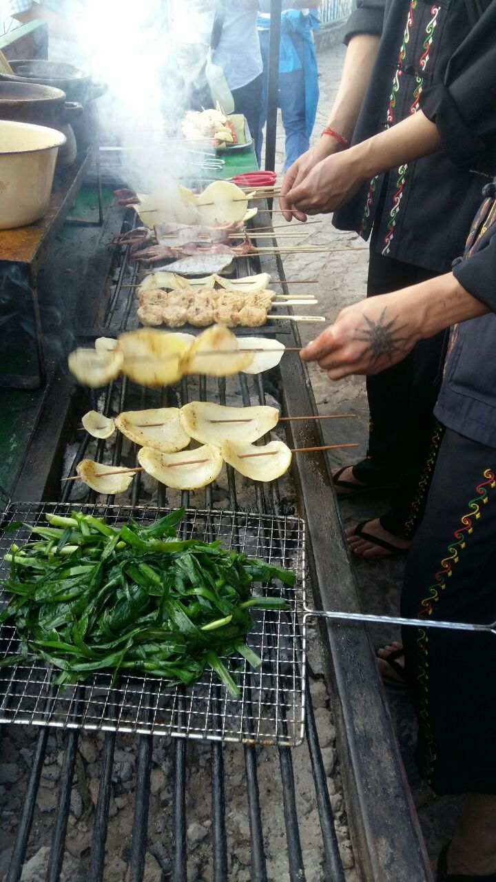 现场用竹杆穿起烤的土鸡,香嫩多汁,你说好吃不好吃。