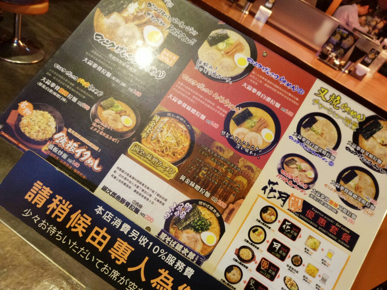 本来想去附近的马辣,结果太热门了,不预定要晚上九点之后才能吃,太麻烦了,随便找了一家,号称是“日本东京拉面激战区史上最强”,名头看上去很大啊,而且一般小店是不加收服务费的,这家拉面还加收了10[%]的服务费,吃完觉得一点都不好吃,日本拉面中的蛋一般不都是溏心蛋么,然后他们家做了一个实心蛋,估计就是随意煮熟之后对半切了,同层就是一个电影院,果然就是电影院旁边随意的吃食的味道,宣传墙内容太过了,没吃完就走了。