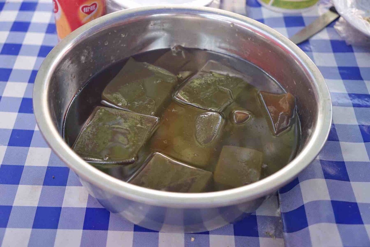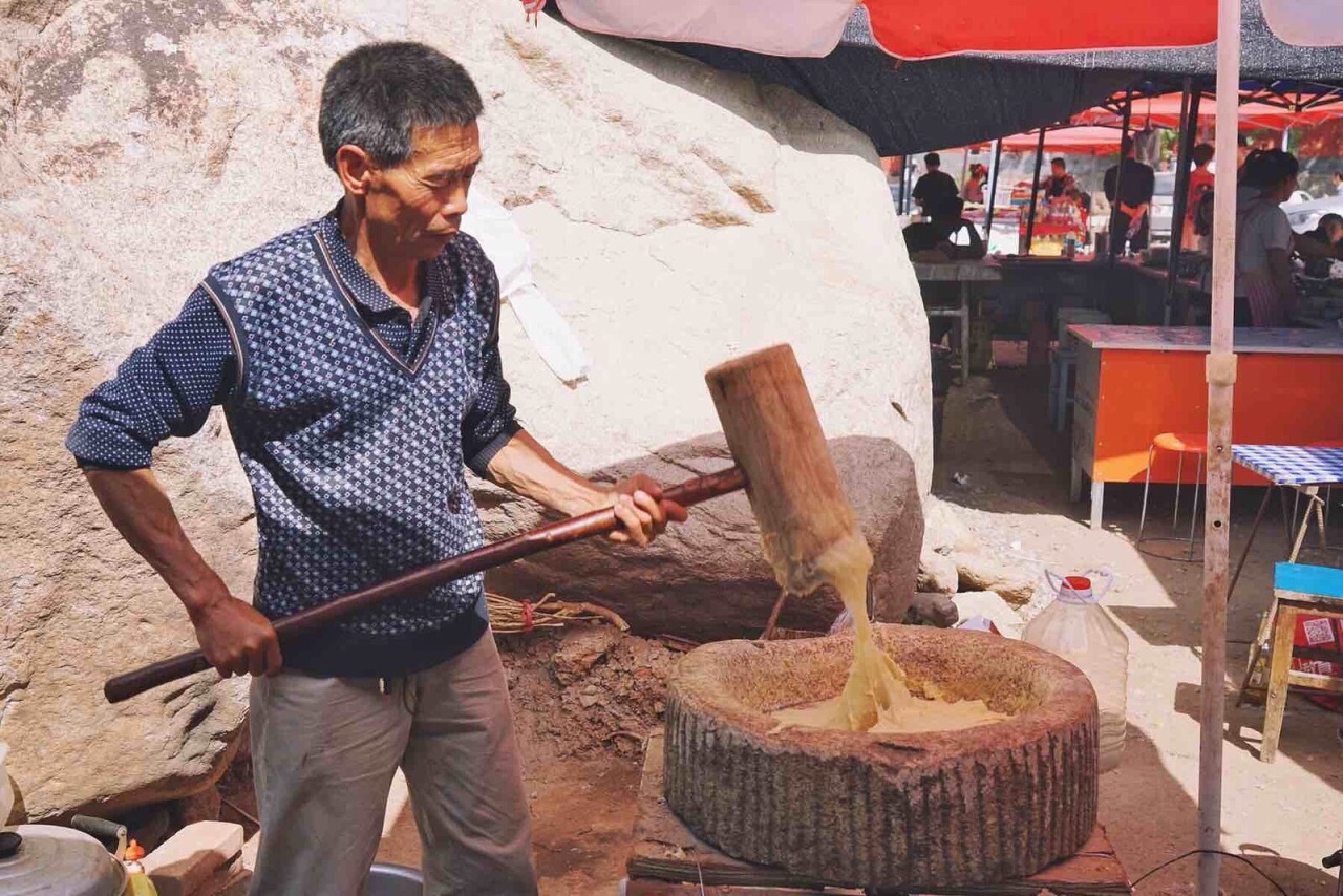 趁着五一假期,来距离西安一个多小时路程的蓝田来玩。早就听说蓝田饸饹很有名,便趁着这次出行,一同来尝尝。 水陆庵停车场的两边棚子里都是些小吃铺,这边停车没有统一收费,都是当地的居民骑个小摩托车来过收费,5元不限时。停车位挺多的,也不紧张。随意找了家用餐人少的。糍粑都是现场拿锤锤砸的,手起锤落,看起来很是过瘾。这边还有蛮多稀奇的小吃。有一种神仙草的小吃,店家极力推荐,不过听说是采摘的山上的野草制作而成,味道偏苦些,比较清凉,便放弃了。还是来份蓝田特色的饸饹。蓝田的饸饹剩在口感,这边的饸饹口感更加劲道,更爽滑一些,不像西安这边面条般的口感,稍加调味,倒入醋水,感觉还蛮多好吃的,吃过午饭依旧下肚了整整一大碗。
