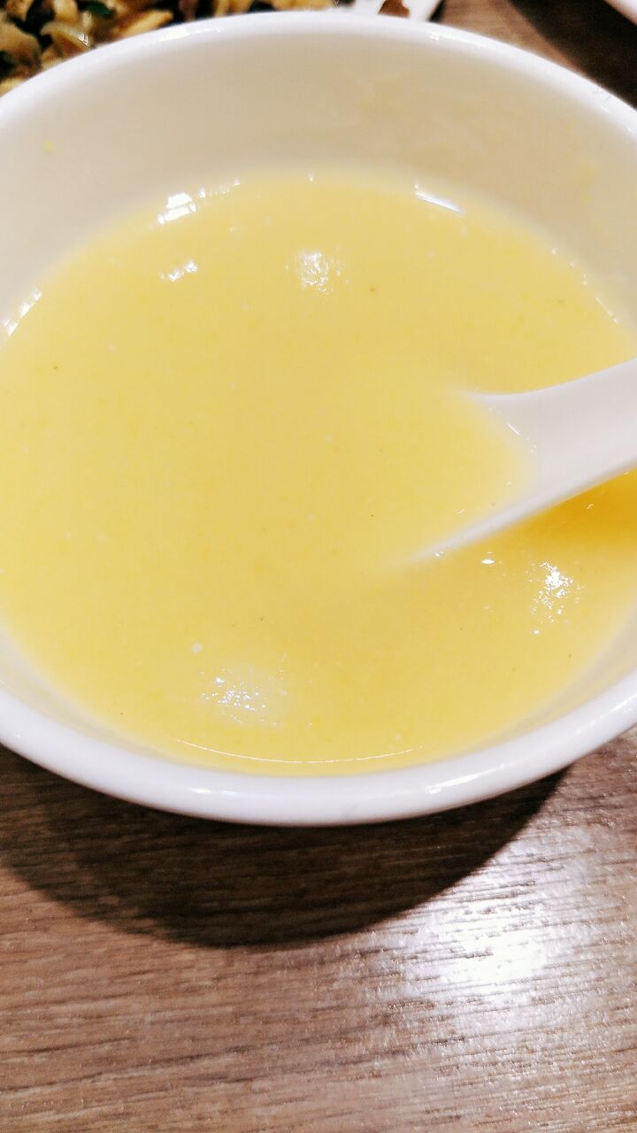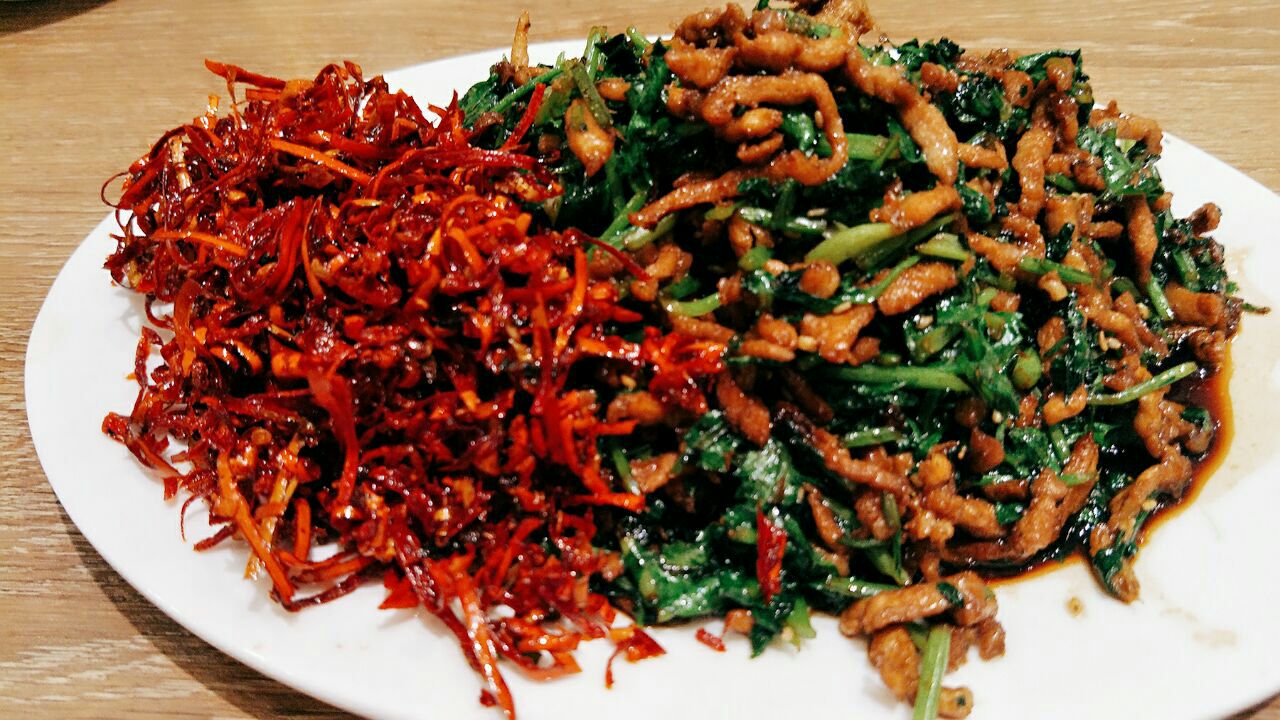 特别推荐香辣肉丝,小炒杏鲍菇,外婆菜炒鸡蛋,这几道菜往筋饼里一卷,一口咬下去,真是太爽了很喜欢他家的口味。我们两个人点了两个菜,6对筋饼,足够了,因为还有免费的香甜可口的玉米粥可以喝呢。特别推荐香辣肉丝,小炒杏鲍菇,外婆菜炒鸡蛋,这几道菜往筋饼里一卷,一口咬下去,真是太爽了!