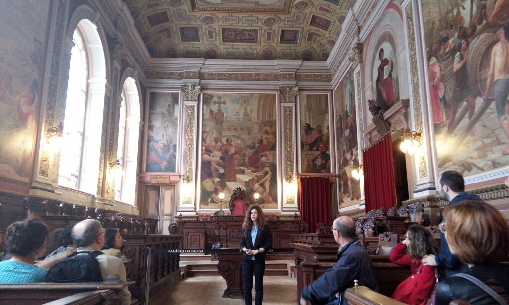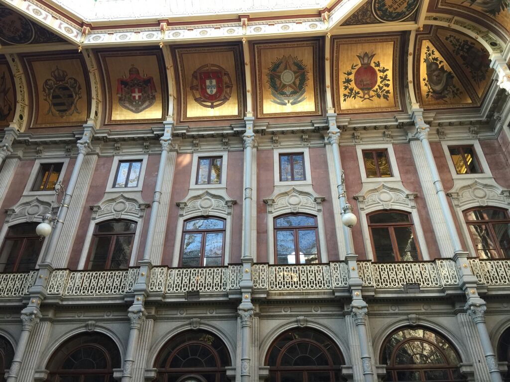 波尔图证券交易所宫是一处有着两百年历史的股票交易市场。可见当时这里是多么的富有,多么的辉煌波尔图证券交易所宫是一处有着两百年历史的股票交易市场。交易所金碧辉煌,有着铂金的屋顶,鎏金的立柱,精美的壁画,仿佛置身宫殿一般。可见当时这里是多么的富有,多么的辉煌。
