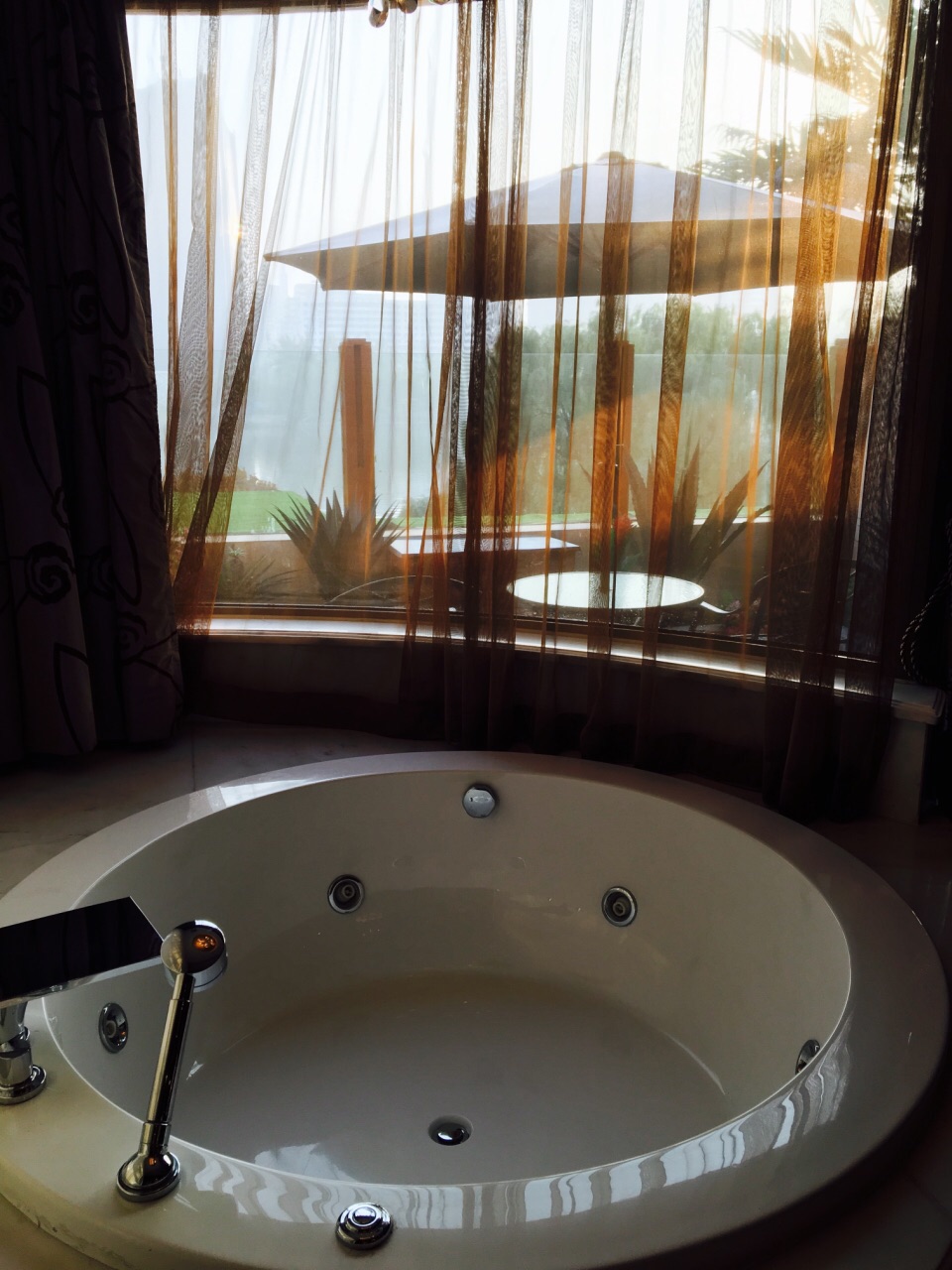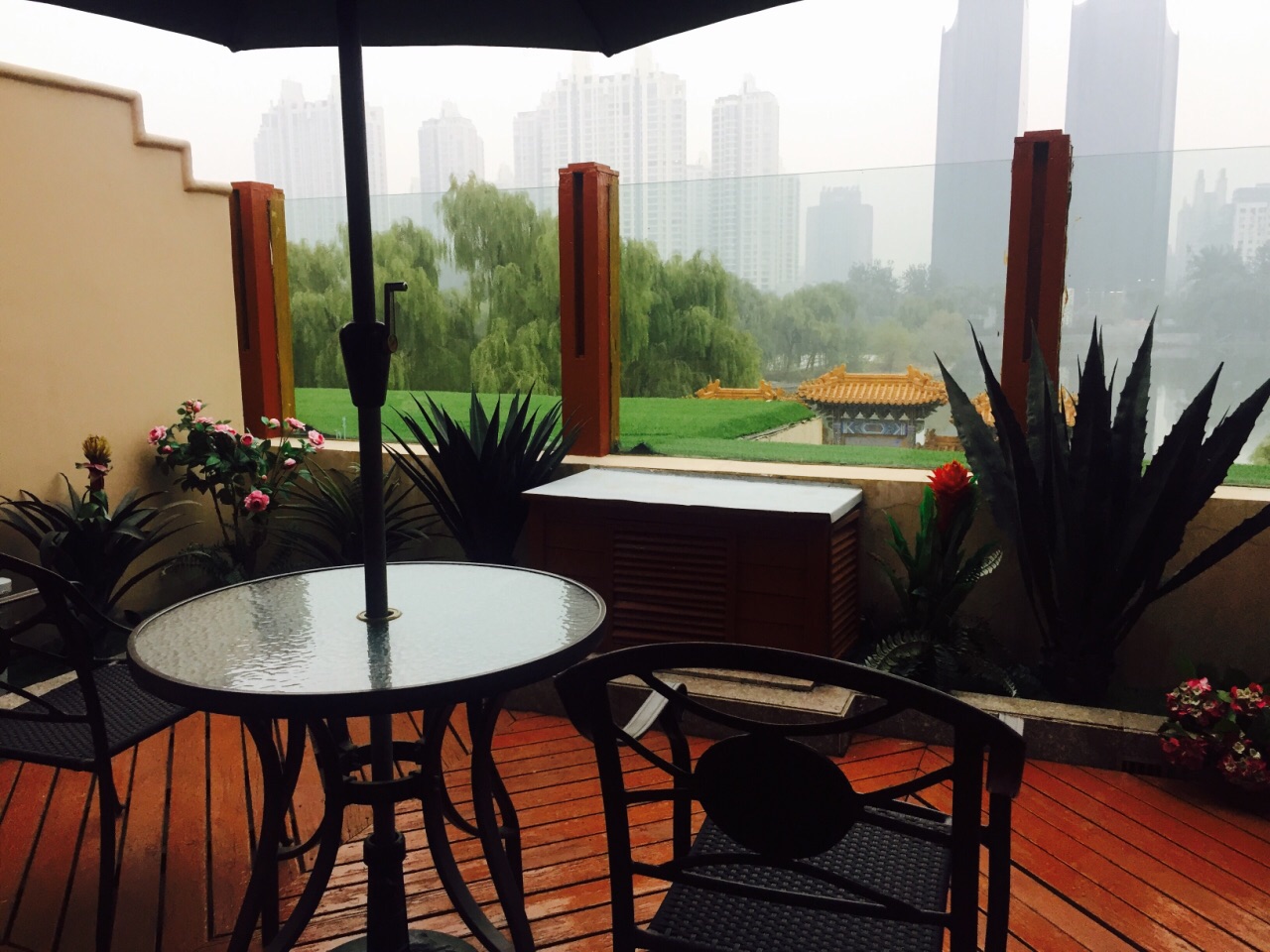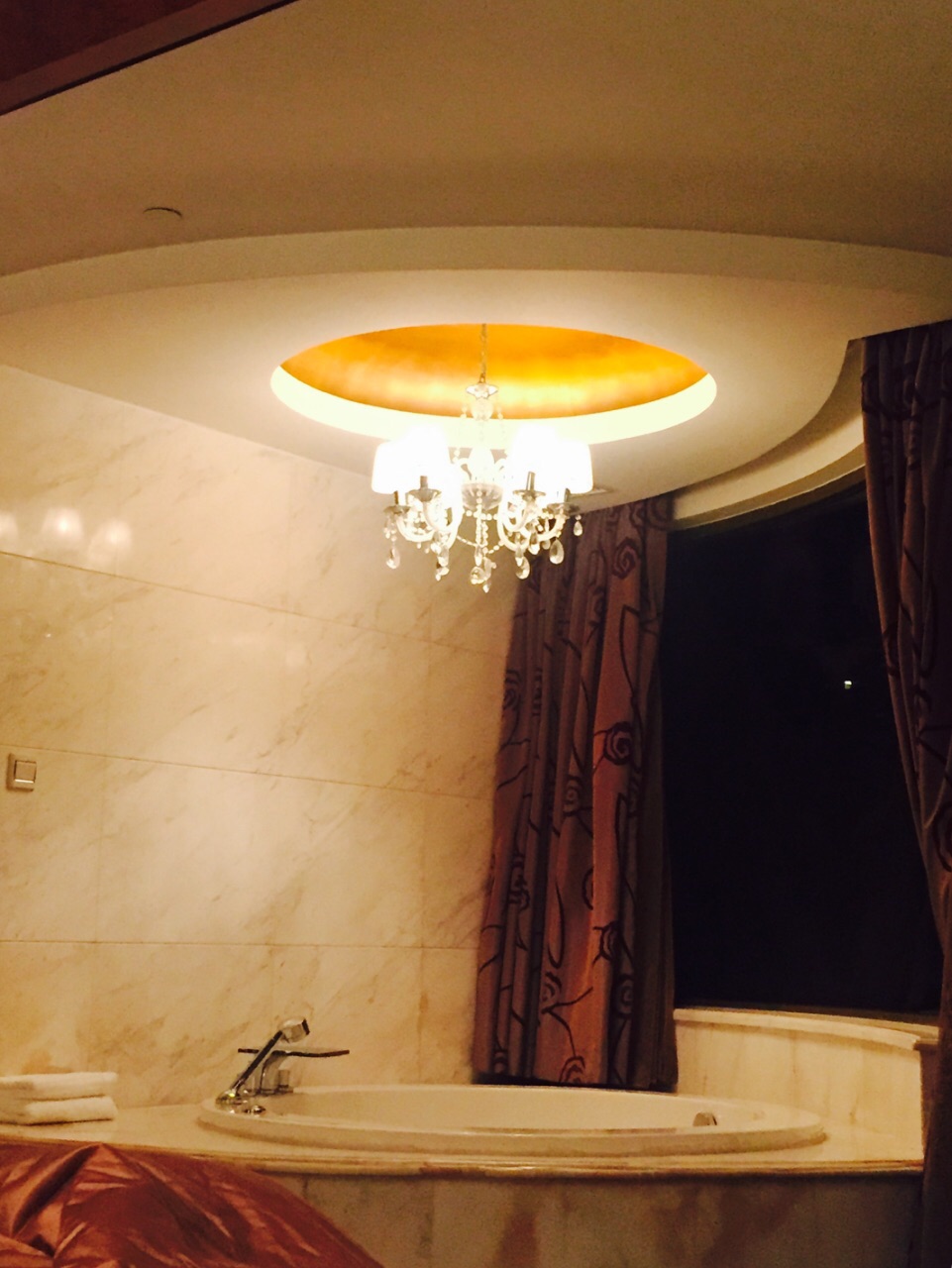朝阳公园附近的8号公馆绝对堪称高端大气上档次,从气派的大楼外部装修,到房间里的金碧辉煌无不透露出一种贵气。苹果电脑、室内圆形浴缸、双人洗漱操作台、舒适的床品、早餐送到房间服务以及阳台超大的露台,服务员很有眼力见儿,热情负责,早上到露台上呼吸下新鲜空气,如果不是雾霾与刚下过雨的潮气,风景应该会更美!整体还是比较满意的!
