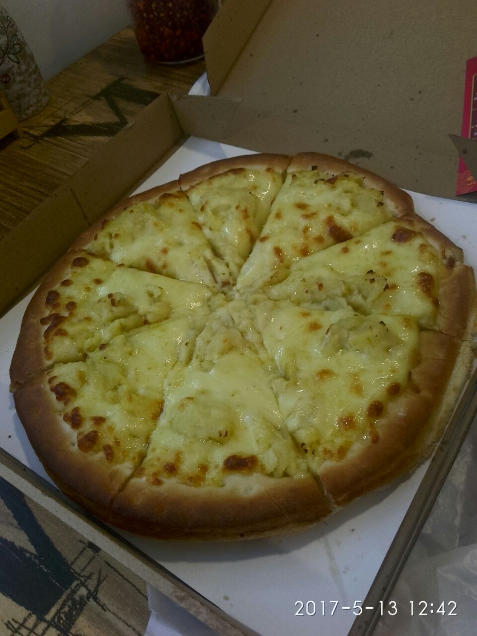 网友2017-05-1510寸50元,热乎出炉啦!中饭再次出现在这里解决,大概真的是太喜欢了,榴莲披萨榴莲披萨,好吧中饭再次出现在这里解决,大概真的是太喜欢了,榴莲披萨榴莲披萨,好吧!10寸50元,热乎出炉啦!口水直流,不怕烫的尝一口,榴莲味道挺重,可以看到丝丝烤熟的果肉混着芝士,香~