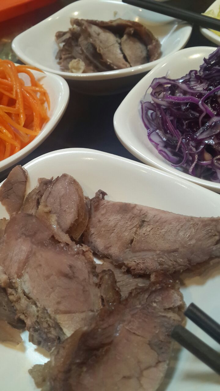 中午时间食客满座,排队等候,尝到了凉面,很赞,小菜也可口,牛肉味佳,按个人口味少放辣椒,吃的很是过瘾金强牛肉面馆,在兰州也是有一定名气的,盐场堡那里新开了一家,人气也很旺,中午时间食客满座,排队等候,尝到了凉面,很赞,小菜也可口,牛肉味佳,按个人口味少放辣椒,吃的很是过瘾。