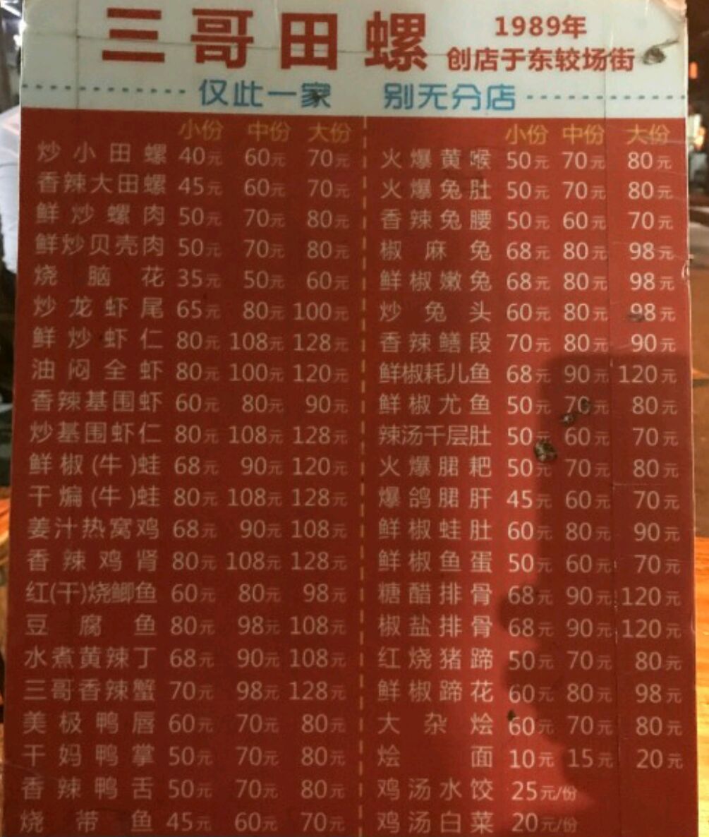 三哥田螺到现在有30年了,原先是家苍蝇馆子,现在在339有了新店。不过我还是喜欢位于书院街的总店,破败的装修阻挡不了超神的厨艺。 晚上五点才开门,营业到凌晨四点,不在高楼大厦或美食街上,一条窄窄的小巷子,每到晚上涌来无数好吃嘴。 炒螺肉、鱼香虾仁、炒田螺、烧脑花……每道菜都重口味,招牌田螺辣得跳脚,个个都大,挑出来的肉扎实。 人均:106 地址:北书院街(近育婴堂街)