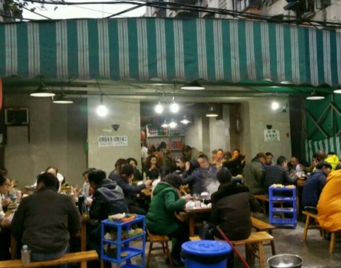 开在老小区的巷子里,不是熟人带路鬼才找得到...一家由车棚改造的老火锅,几乎零差评。排队的人像在打群架,人太多了 锅底是地道重庆味:一大坨的牛油加花椒+醪糟越煮越辣,味道简直安逸。麻辣但不觉得很燥,关键吃完后既不很口渴,衣服上味道也不大。特色豆干、嫩牛肉、耗儿鱼、锅底的蒜、就连小吃黄金豆都能分分钟惊艳你!葱节节也拿来当菜烫起吃,回甜回甜的,好特别! ➤ 不要太注重环境哈,他家味道才是王道!虽然就是路边搭个蓬蓬,但人气还旺到不行,想去还要提前定位置,不然就得排队!排队!排队~ 人均 : 49元 地址:成华区菽香里一巷36号
