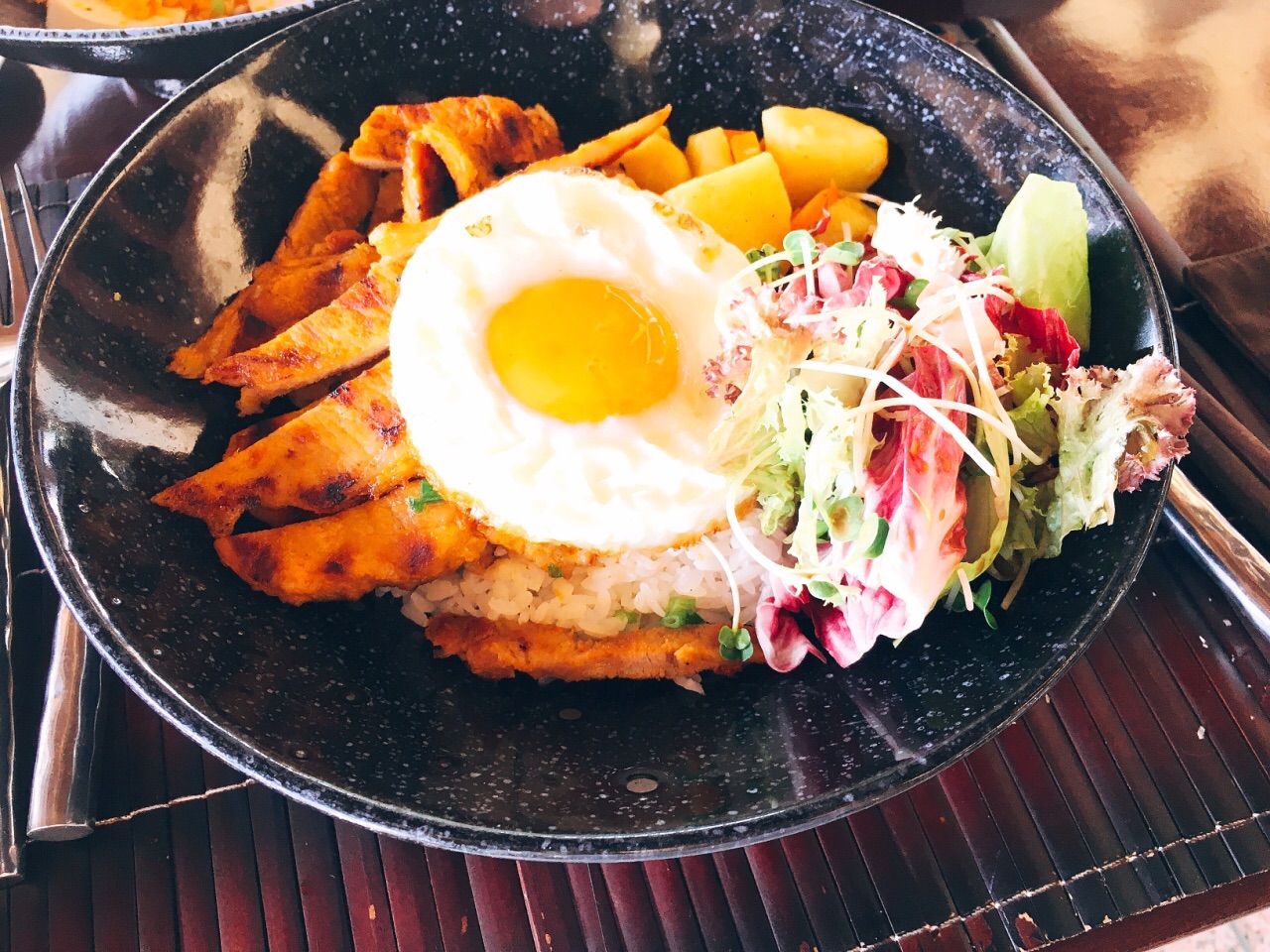 这家餐厅是安纳曼达拉度假村内部的一家餐厅,没有明显的店面标志,所以店里也很清静,音乐很舒缓,又是在沙滩边,环境绝对可以打满分。值得一提的是菜品名字的长度,念完一道菜的名字有一种要断气的感觉,一道菜里面出现的所有主食与配料都会出现在菜名上,也算是直白易懂。同样菜单也有中文,点菜没有压力。可惜菜品的味道并没有名字上那么显得有深度。这里还是适合点一杯鸡尾酒或者啤酒坐一下午。