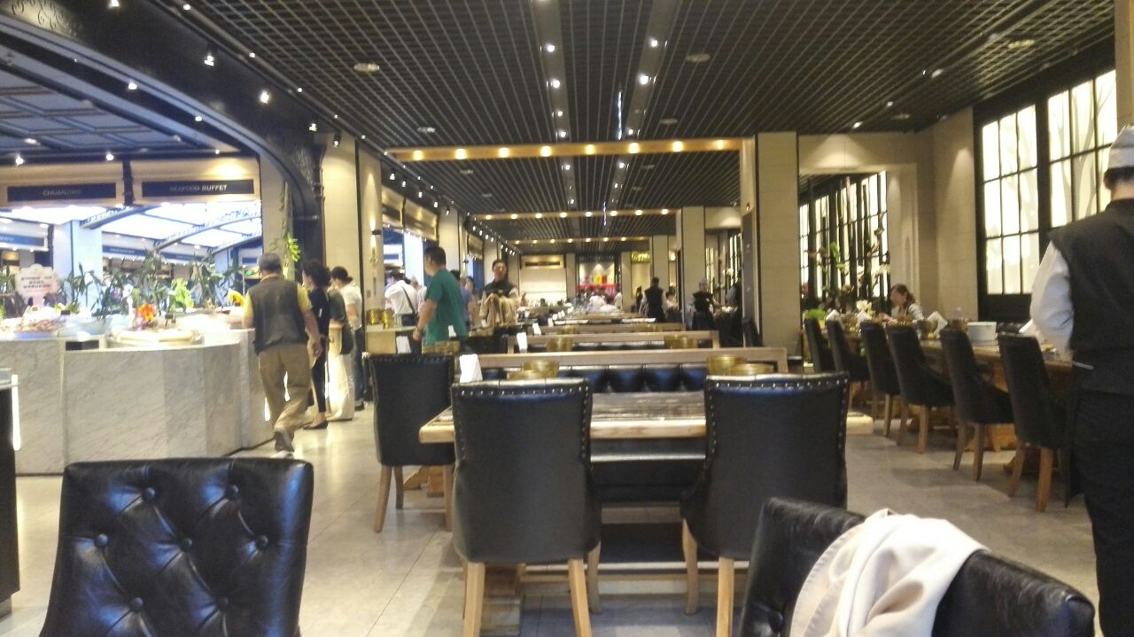 1位置,北京站街东口万豪酒店一层,毗邻建国门商圈北京站,交通十分便利,万豪酒店商业集群也较高,有高中档餐饮及服装业态。自驾也比较方便,万豪酒店停车场较大,可容纳一定数量的车辆。 2环境,商户室内装修典雅高档,功能分区合理,生熟食品分区摆放,甜点,饮品,水果等都有自己的分区,桌椅很舒适,摆放不拥挤,相互之间没有干扰。地面桌面,均能做到及时保洁。 3服务,工作人员有自己的固定职责,非常热情敬业,能够做到主动及时的服务,态度友好礼貌,提供围裙,桌面保洁及特殊食材的烹制。 4菜品,菜品非常齐全,有各种食物饮料不下百种,食材均是非常新鲜,海鲜类有生蚝,扇贝,油贝,海螺,阿根廷红虾,竹节虾等,水果有库尔勒香梨,草莓,龙眼,菠萝,猕猴桃等,另外还有烤串,烤鸭,冰淇淋。总之是一场饕餮盛宴。 5性价比,价格在自助餐里绝对说不上便宜但是绝对说的上性价比很高的地方,值得一试