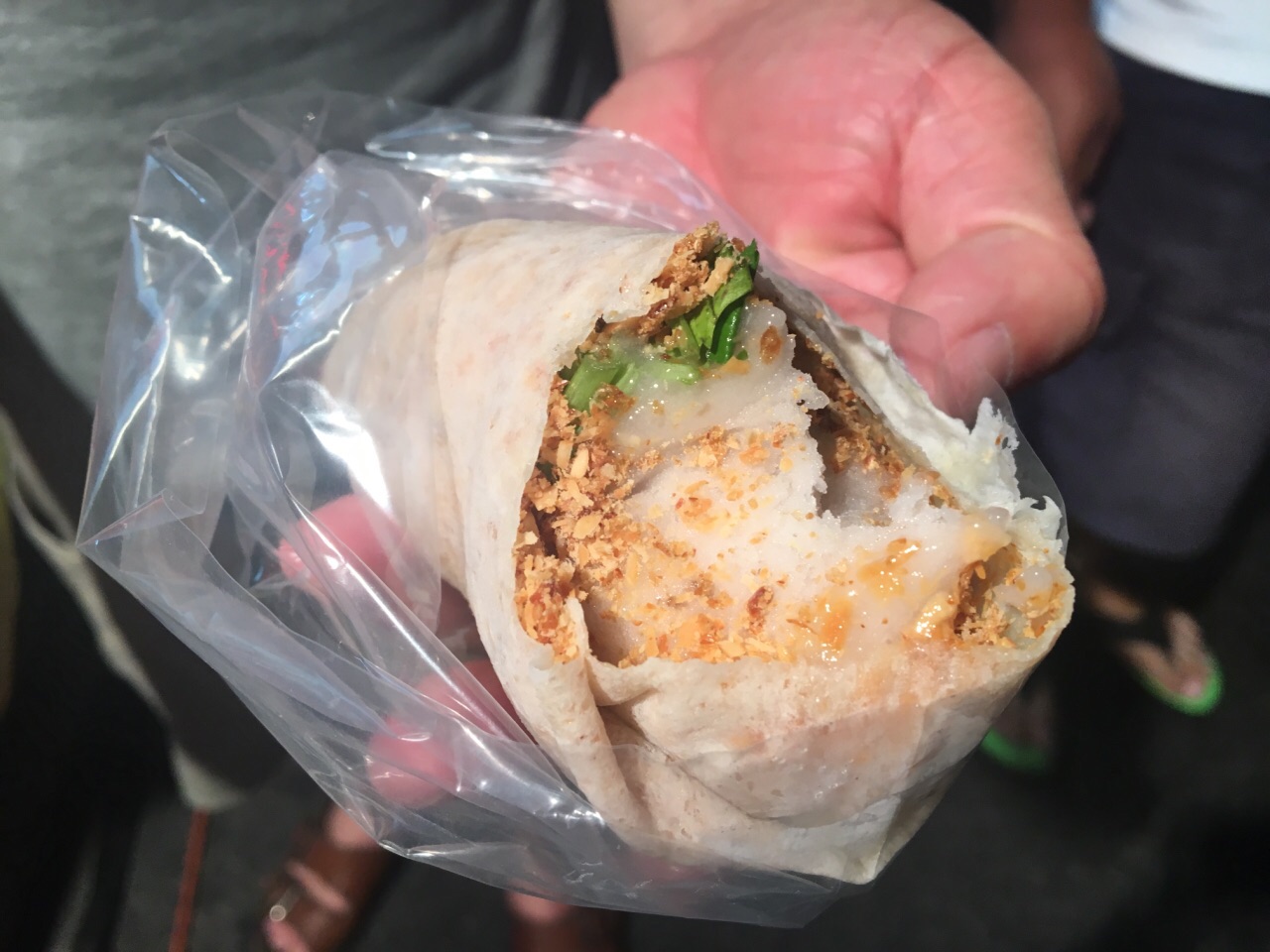 这两种风味的东西怎么能够和谐的融合在一起呢,我真是难以想象春卷冰淇淋,让我惊奇的不是将冰淇淋卷成春卷皮中,而是在冰淇淋上加上香菜!这两种风味的东西怎么能够和谐的融合在一起呢,我真是难以想象!小心的将香菜扯出来,光吃加了花生粉的冰淇淋,还是美美的。