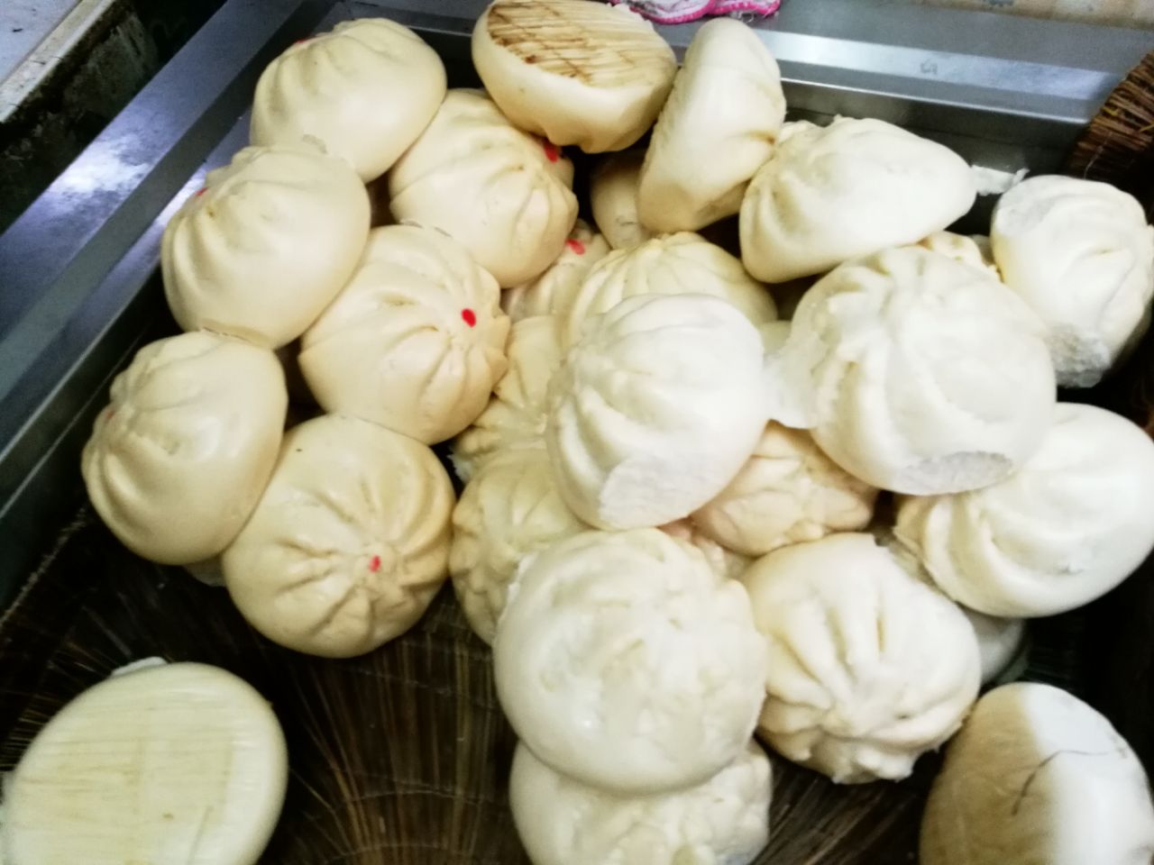 武汉重油烧麦的代表之一。点一份肉丁有颗粒感、皮薄馅足的烧麦,配上一碗店家自备的地道花红茶,是老武汉人的吃法。值得称赞的是,还有个头超大的包子,一口咬破就要流汁的鲜肉包,口味浓郁的酱肉,还有腌菜、红糖多种可供选择。
