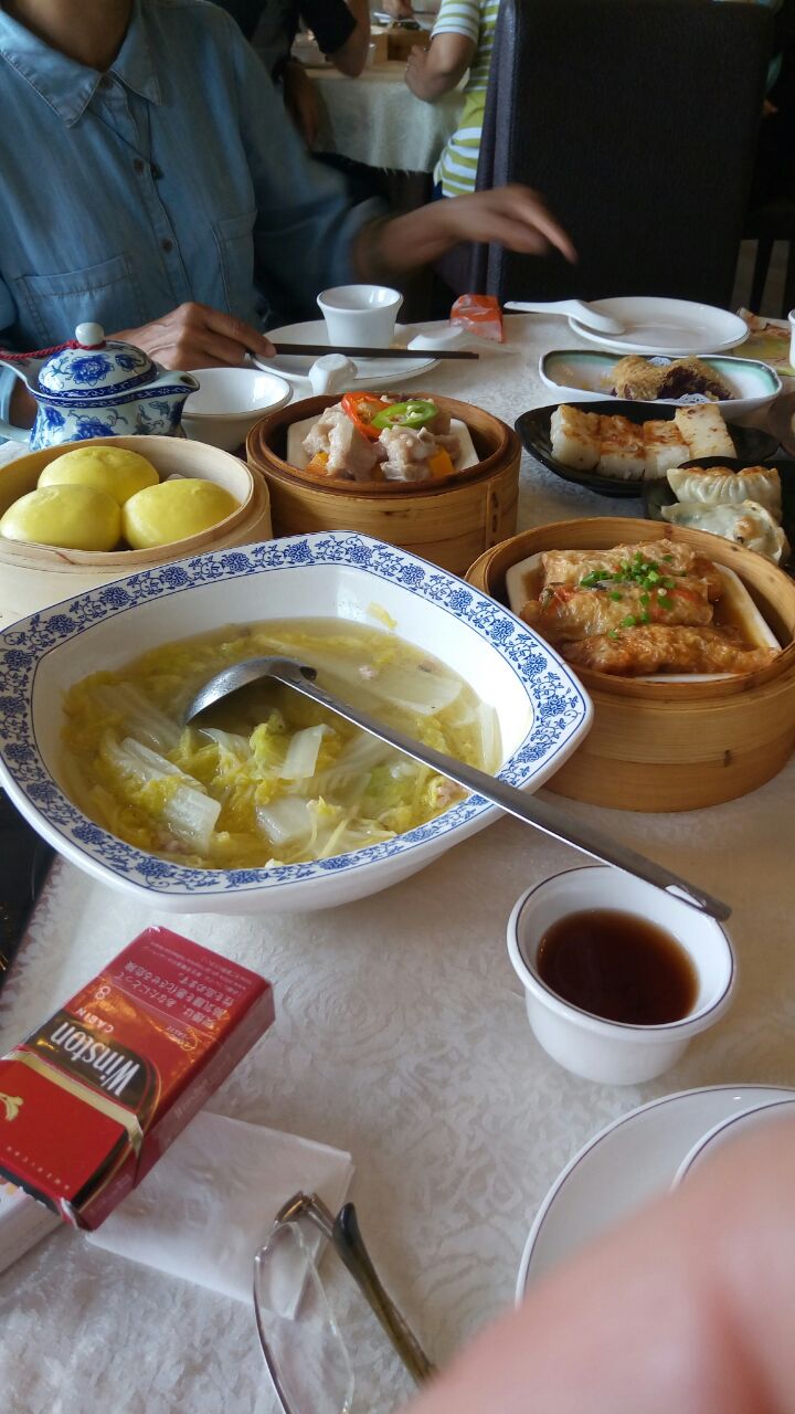 生意很好,上菜很快。 朋友聚會,去的時候是中午十二點多,剛好兩桌買單,所以沒有排隊等候,上菜速度也還不錯,一下子就把點的東西放齊了! 1/本來想上菜那麼快,是否是早已做好、但保溫過久、口感嫌老的點心?結果不是,所有點心像現蒸或現炸,這點很令人滿意。 2/味道還不錯,大多中規中矩,紫薯卷和肉粽很好,茶粿比旁邊的名店河X好吃,腐皮卷紥實,流沙包比較不甜,所以味道基本上都算OK! 3/只對相片中的白菜(圖3)有些意見,上來的溫度不夠,感覺像做好放了一下才給我們。 4/每桌有一套完整的沖茶設備(圖1),這點最令人滿意,因為不像其他店,加水都要等服務員,或是泡茶佔用桌面空間,非常方便。 性價比也很好,所以推薦。