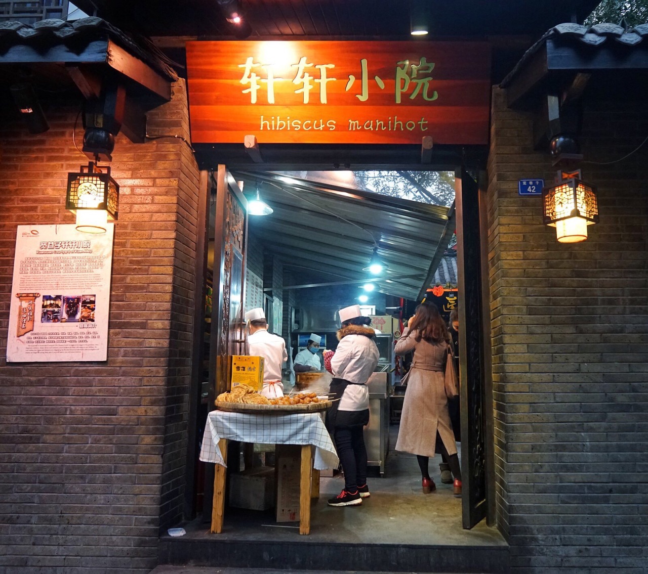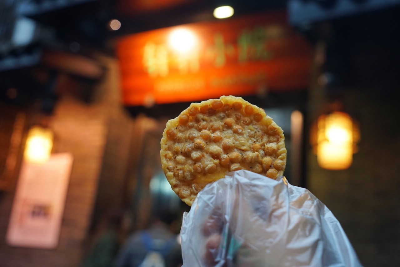 ✨宽窄巷人气小吃✨ 去到成都的招牌景点:宽窄巷,第一家店铺就是它,门外有着聚集着满满的人群,便惹不住好奇心,来凑个热闹。 正所谓排队美食,跟着人群买,总是保险的。豌豆饼据说是川人们的童年记忆,也伴随着他们一同长大。在成都玩耍的多日,似乎也只在此处看到有卖。曲子本地最常见的粮食制作而成,最宜佐酒,宽窄巷本就是放松惬意之地,约三两好友,来此小饮聊天,也是极其自在的。门口支着小台,上面摆着小吃,第一眼看到店员直接用手接钱还是震了一下,好在球团直接用签子穿好,不需过手。 豌豆饼直接套塑料袋打包。里面的过道中摆了几张桌子,售些小吃:凉粉、抄手、小吃等。再往里,便是炒菜米饭了,看评价,相对于景点中的餐厅,他们家的性价比还是不错的。 宽窄巷的第一站美食,自然不能吃太多,还要留些胃口为接下来的美食之行。便在门口,点了份小吃。小吃也延续着成都美食的特色,吃上去会有些油腻感。在成都吃饭,感觉菜品都会油腻些,口感上便也更香些。 豌豆饼3元一个,金黄的色泽,看上去便诱惑力十足,油炸而成,外皮酥脆,豌豆虽没有单独油炸而成,也软硬适中,很好嚼,也不会崩牙。制作中也加入了盐味,味道很是不错。逛的时候,一边溜达,一边在嘴里嚼上一口,香味萦绕舌唇间,甚是解馋。