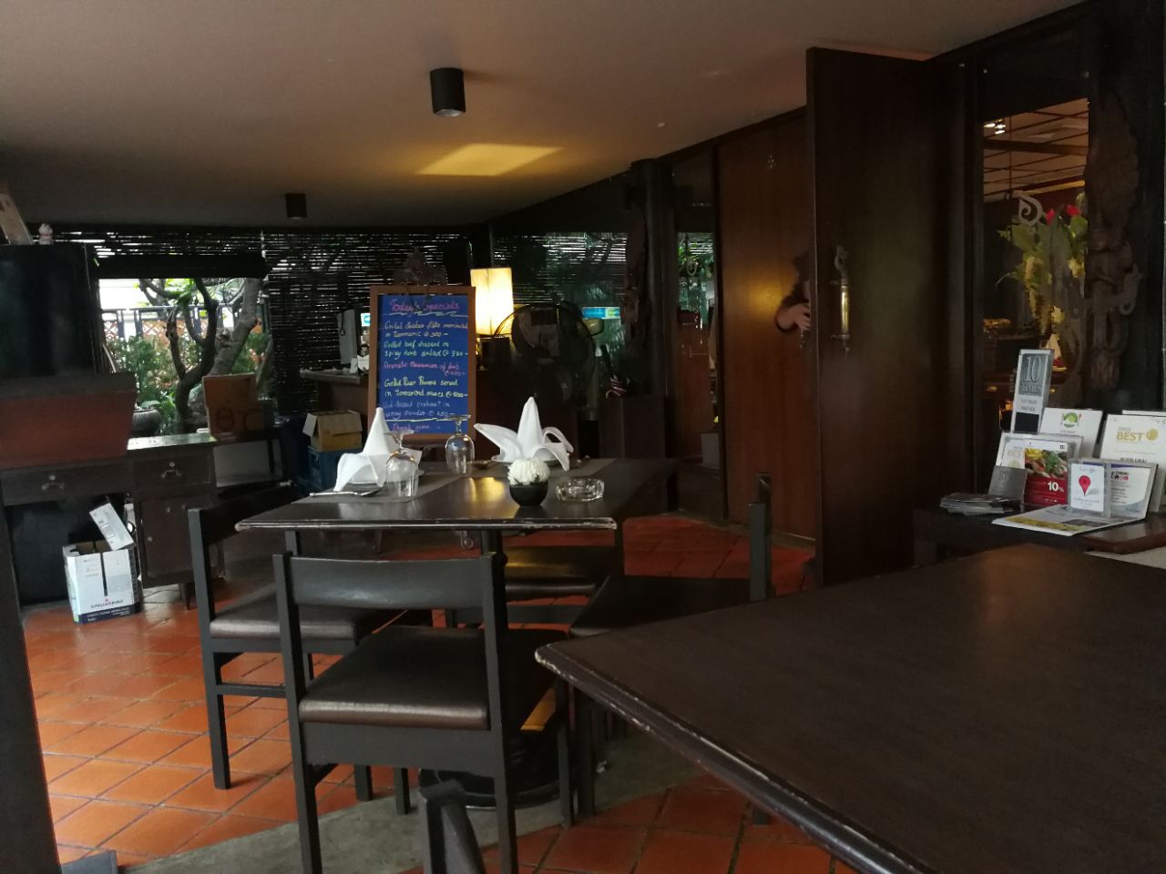 网友2017-05-24两个人吃了四个菜两个饮料约1500泰铢 很推荐得饭厅。环境超级好,有一个服务员会中文环境超级好,有一个服务员会中文。两个人吃了四个菜两个饮料约1500泰铢 很推荐得饭厅。位置清幽僻静,需要走过一个rose hotel才能看得到