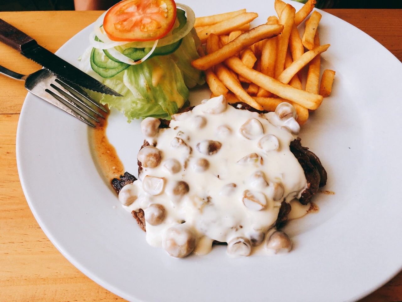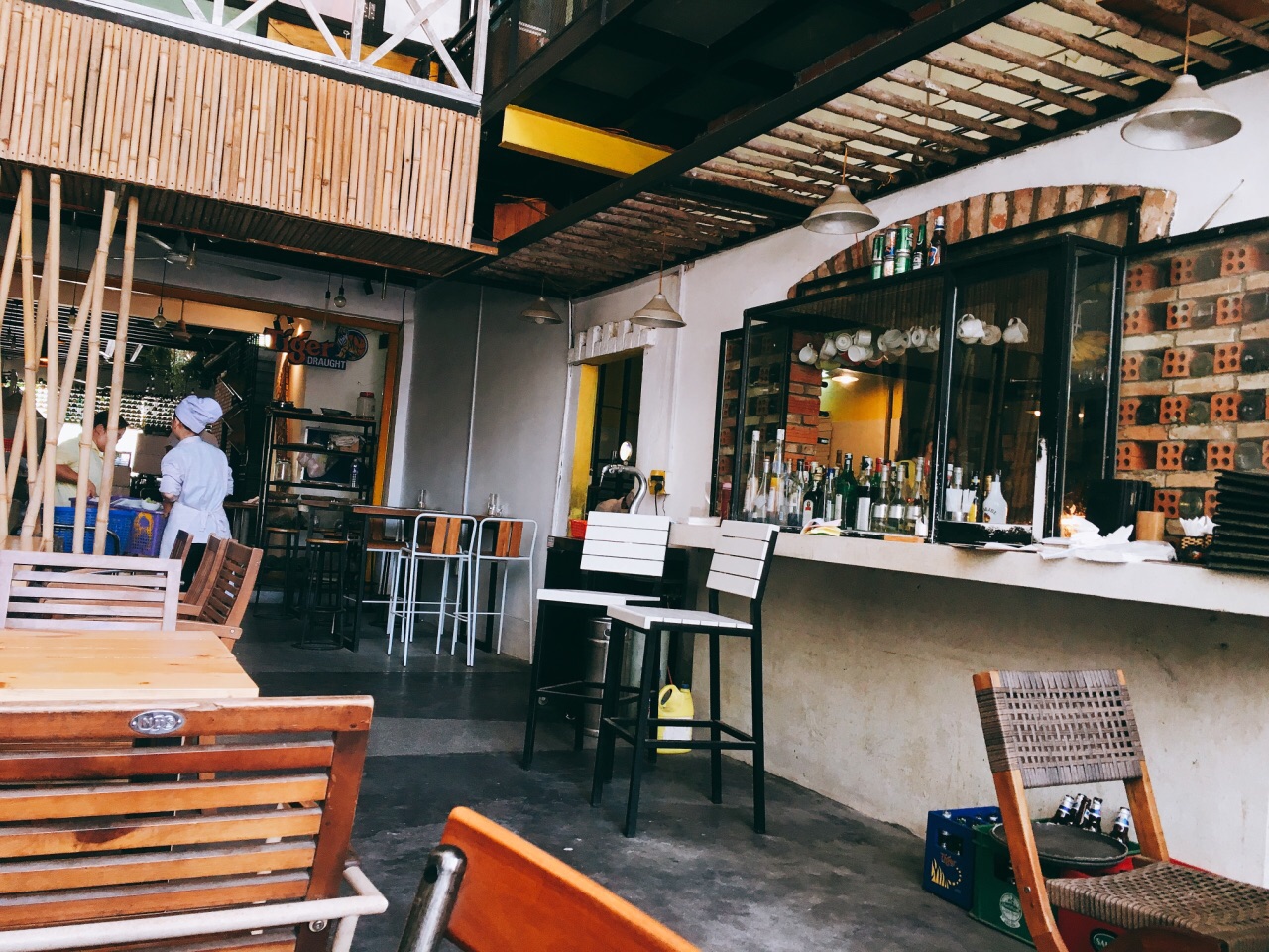 环境和装修可圈可点,分室外室内两部分,室外还有二楼的小阳台,整个顶面装饰的灯笼色彩丰富,看得很赏心悦目。菜品特别丰富,看到厚厚的菜单本就知道了。推荐招牌的牛排,性价比超高,配蘑菇酱的五分熟牛排简直不能再棒。披萨的种类也多种多样,占据了三大篇菜单,约摸估计至少有三十种,喜欢披萨的朋友一定会点到自己心满意足的披萨。奇特的事情是点了一份水果沙拉,结果端上来一盘水果拼盘,好吧,在异国他乡要求不要太高,有水果可以稍微解一下西餐的油腻就好了。推荐一定要来尝尝牛排。