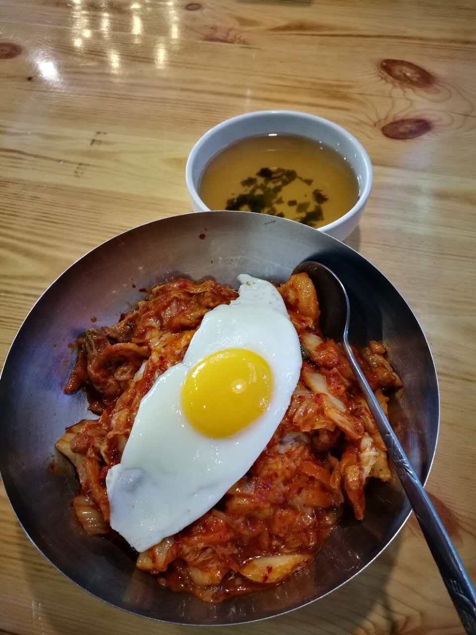 【位置】 石林百货商场面对胜利路这个门的一排店里,路边没有划线车位,大家随便停,应该有地下停车场的。 【环境】 简餐店,干净整洁,灯光温馨,座位间距尚可。 【服务】 收银台的阿姨,一人照顾一楼全场,食物通过小电梯从而楼传下来的。 可以用微信、支付宝买单。 【食物】 泡菜五花肉拌饭,18元,分量足够一个女生吃饱,泡菜酸辣可口,五花肉不腻,分量不少,每一口饭都可以搭配菜吃,整体味道还不错,就是米饭略软烂了一点。 泡菜很好吃,又另买了一份,12元一盒,回家自己拌饭吃。 【评价】 停车方便,环境不错,服务尚可,食物还不错,吃个简餐是不错的选择。