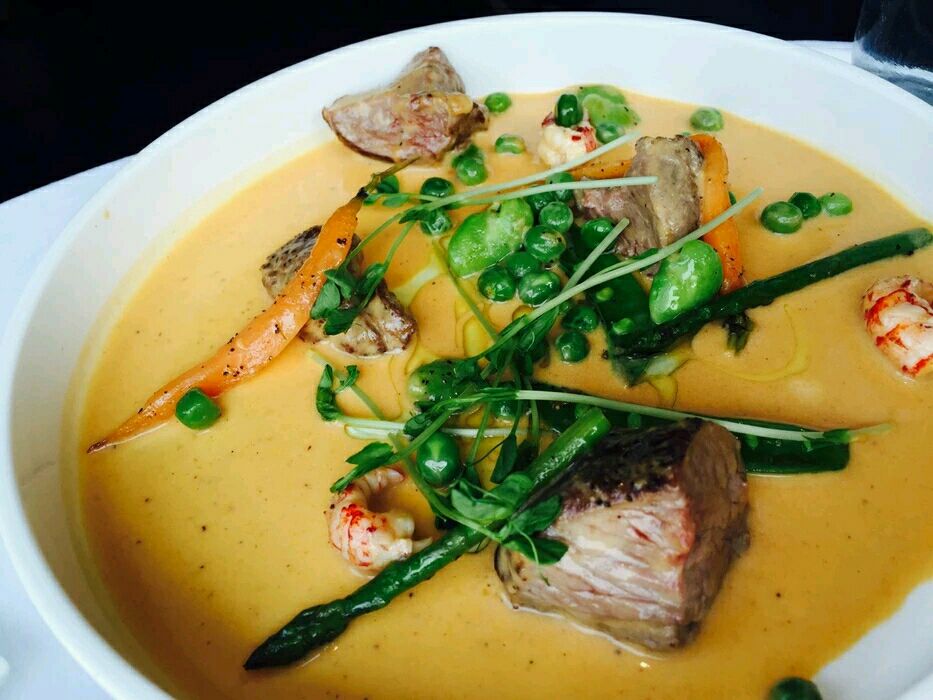 主菜泰式粉肠类似港式的肠粉,里面的料还是挺多的,比较满意河滨旁边的餐厅,风景一般,没有想象中迷人,蚊虫多的要死。主菜泰式粉肠类似港式的肠粉,里面的料还是挺多的,比较满意。其他的就显得名不副实了点,都是吃完就忘记的东西