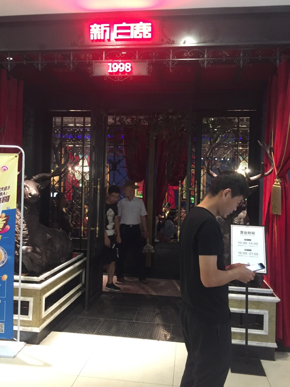 去看电影后已经是中午一点,赶紧冲到新白鹿取号,前面还有10桌客人!刷支付宝扫码点菜,可以节省时间,还好人不多,而且也差不多到点了,大约15分钟就轮到了。到桌上扫码桌号,下单,无纸化点菜就是方便,而且环保!这家店的装修风格和庆春银泰的差不多,走的是后简约时尚风,又有民国时期复古风。新白鹿从1998年开始自武林门发展至今有二十载,分店多达二十余家,走的是大众亲民价格路线,因此开一家火一家!翻桌率很高!其实经营者薄利多销的策略是十分正确的!正是因此而讨了好口碑,才能吸引顾客,才能在众多餐饮品牌中脱颖而出,成为常青树!而且,餐厅的赚头多在酒水饮料,有了大量客人,不愁没利润!其上菜的速度也很快,基本二十多分钟就完备,如果不喝酒,一个小时就可以搞定!提升了翻桌率!高手!