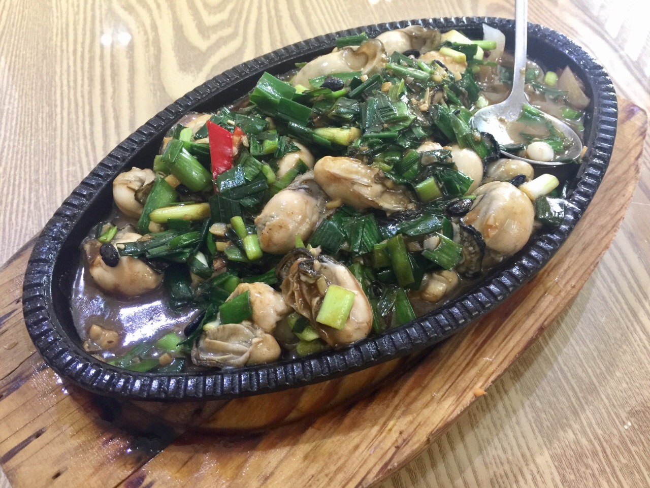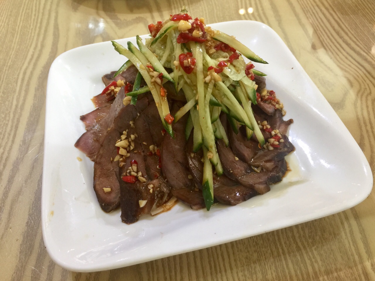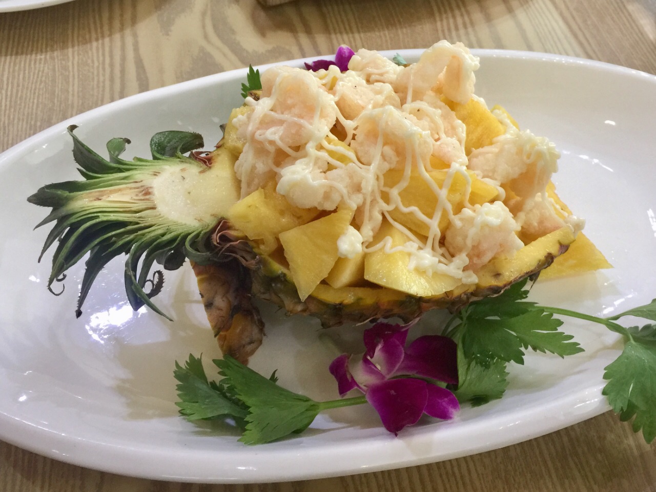 位于紫藤路近青杉路的路口处,门前可停车,但收费不便宜,张口就收¥15。 这是家台湾菜的小馆子,生意很好,进去虽然看着好像还有那么几桌空着,一问之下只有门口一张小桌是没有预约的。再来的人就没座了。 点了蛋卷色拉、牛肉、菜脯煎蛋、铁板鲜蚵、凤梨虾仁和炒饭。有送一小碟花生米。 服务态度不错,大部分菜上得挺快的,蛋卷色拉上得特别慢而且是最后上来的,而炒饭第三个就上来了,牛肉也是后上来的。如果能上菜时间差不多且顺序合理就更好了