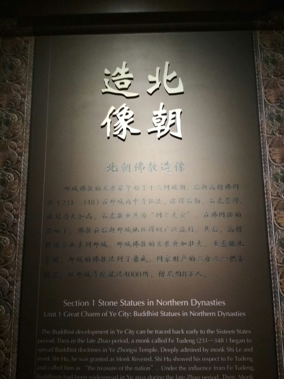 邯郸有這么多的历史,博物馆却只开了简单的三个展厅,磁州窑,钱币,据说另有二个在整修,没开放。建筑外現雄伟壮观,内部規划的那个乱,希望是因为整修吧,展出场地的灯光昏暗,空调不暢,從結语处進去,到开始,再返回出□,令人無语,去过那么多博物馆,這是环境最差的一个,也是最失望的一个。展出的内容,还算可以,谁叫邯郸本身有那个底蕴呢,为什么不好好收集一下。充实下内容再展出呢