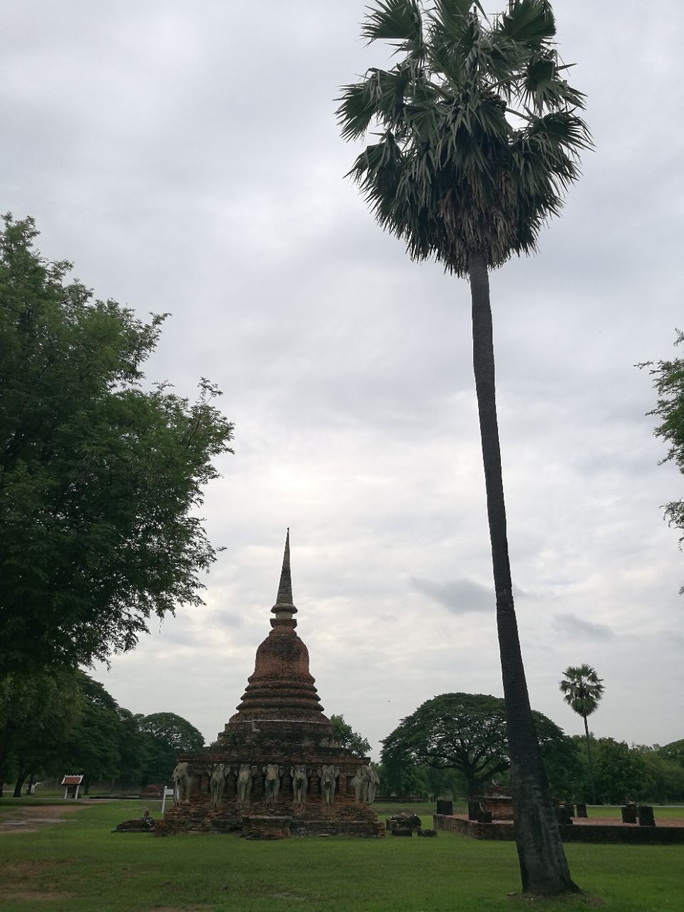 索拉萨克寺在古城北部,造型和群象寺类似,也是底座上很多大象托着,但规模比群象寺小,大象雕塑保存得也相对完整。数了数一面有七头大象,一共24头。