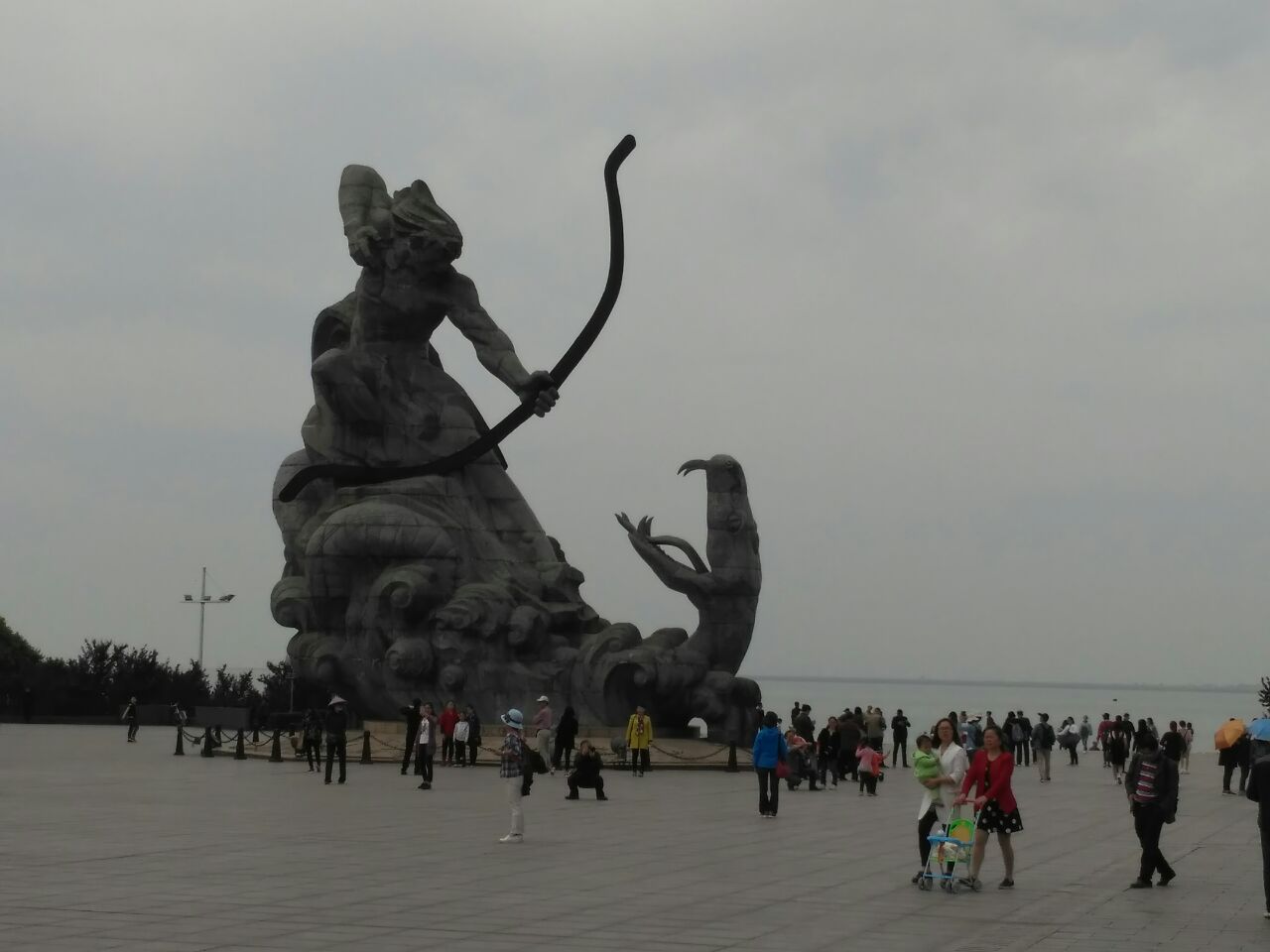 同样一个地方,連著汴河街,岳阳楼,面对著洞庭湖,头天晚上到此一遊,人潮如織,应该是当地人晚上纳凉好去处,但除广场外,灯光昏暗繞了一大圈,看到了瞻岳楼及旁边的小楼,嚇了一跳,二个小楼,一个后羿射日大雕像,這不会就是岳阳楼吧,太失望了。繞过汴河街看到岳阳楼公园,黑漆一片,问人才知道晚上没开,还好,明早再来。