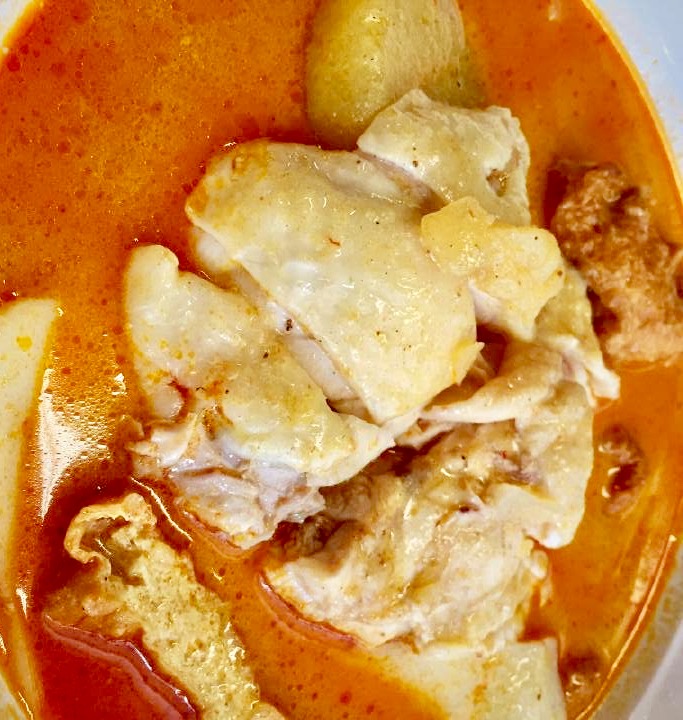 网友2017-06-01重点是白鸡煮得非常滑,在咖喱汁里浸到热,非常好吃哦咖喱汁非常浓郁,椰浆味很重,即便配上面条和米粉也比较咸。豆卜有咬劲又吸满了汁,土豆一抿就化。重点是白鸡煮得非常滑,在咖喱汁里浸到热,非常好吃哦